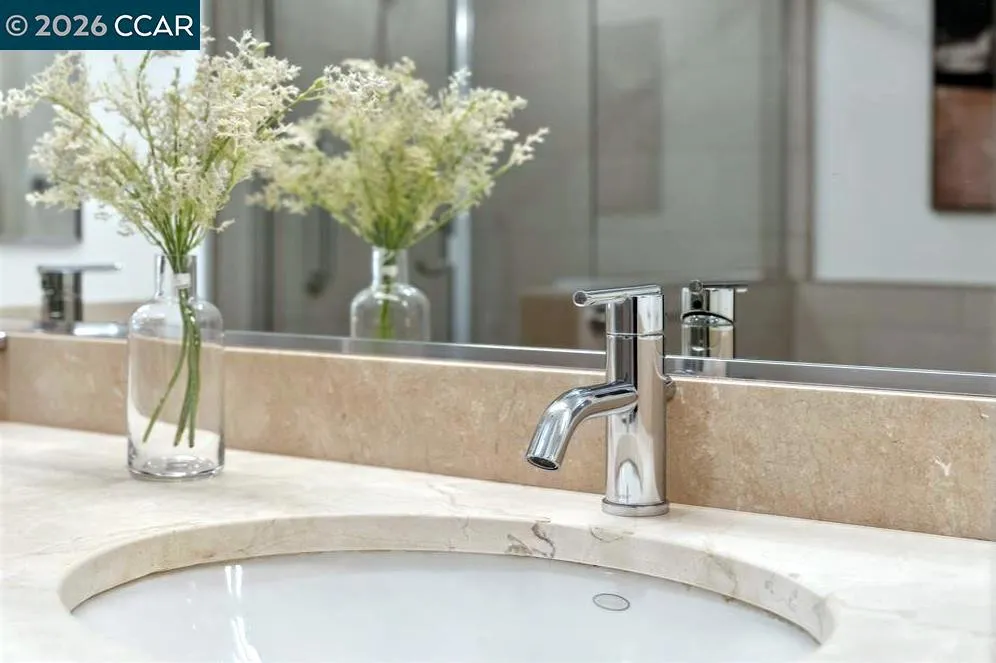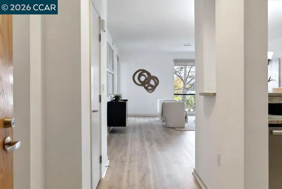 NOW AVAILABLE: An Exceptional Residence at The Mercer — Downtown Walnut Creek’s Premier Luxury Address.Welcome to one of the most coveted and most private residences at The Mercer, where refined design, thoughtful upgrades, and an unbeatable downtown location converge. This expanded 2-bedroom, 2-bath residence with a bonus area, is among the most sought-after floor plans in the community, offering a noticeably wider and more open layout than standard two-bedroom homes—creating a sense of volume, light, and effortless flow throughout. Equally rare is the home’s exceptional quiet and privacy. Entrance away from neighboring entryways, this residence is uniquely positioned with no adjacent doors nearby—the closest neighboring unit is well down the hallway and around two corners. The result is a level of calm and acoustic separation seldom found in condominium living: no hallway traffic, no slamming doors, and no audible comings and goings. It is a genuinely serene environment that feels more like a private residence than a shared building—an understated luxury that experienced buyers immediately recognize and value. Situated on the first floor as a single-level end unit, the home enjoys a rare and highly desirable orientation. Large windows capture abundant natural light! Views: Downtown