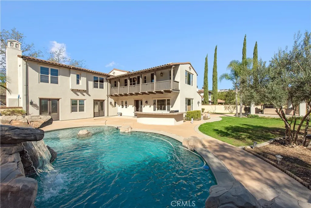 Welcome to this elegant Spanish–style estate, ideally situated within the prestigious 24-hour guard-gated community of Vellano Country Club in Chino Hills. Offering exceptional privacy, security, and prestige, this residence was built in 2006 and features 5 en-suite bedrooms and 5.5 bathrooms across approximately 4,287 square feet of living space, set on an expansive 21,064 square foot lot. Designed with both comfort and sophistication in mind, the home showcases a bright, open floor plan with formal living and dining rooms, soaring ceilings, and a grand family room anchored by a fireplace and abundant natural light. The gourmet kitchen is beautifully furnished with granite countertops, a center island with breakfast bar, upgraded cabinetry, and Bosch stainless steel appliances, including a built-in refrigerator and six-burner gas range. Downstairs has an en-suite bedroom with its own sitting area and private entrance, offering exceptional flexibility for multi-generational living, guests, or extended family. With direct backyard access and serene pool views, this space is both functional and inviting. Upstairs, a spacious loft and dedicated office nook complement the luxurious master bedroom, complete with a private balcony and spa-inspired bath. Three additional en-suite bedrooms provide comfort and privacy for family and guests alike. The resort-style backyard is designed for elevated outdoor living, featuring a gazebo, outdoor fireplace, built-in BBQ island, and a sparkling pool with waterfall, waterslide, and spa. Panoramic views of rolling hills, city lights, and breathtaking sunrise create a truly spectacular setting for entertaining or relaxing. A wide driveway and ample 3-car garage further enhance the property’s appeal. This is a rare opportunity to own a distinguished luxury estate in one of Chino Hills’ most sought-after gated communities.
