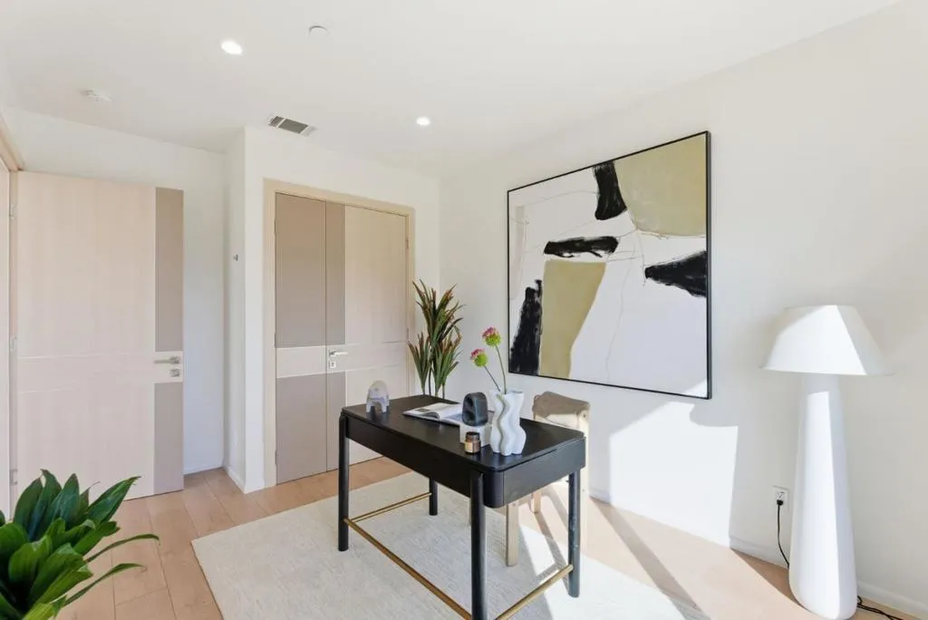 Experience everyday luxury in this impeccable 4BD/3.5 BA residence. Perfectly situated at the intersection of Santa Clara, Cupertino, and Sunnyvale, this home offers a sophisticated retreat designed for maximum flexibility. The light filled interior features porcelain tile floors, European style solid core doors, and well proportioned secondary bedrooms complemented by versatile landing spaces, ideal for a home office, media lounge, or creative retreat. A gourmet kitchen serves as the heart of the home, boasting Quartz counters, Bosch appliances and a wine refrigerator. The primary suite is a true oasis with a private balcony, walk-in closet, and a spa-worthy ensuite with a standalone soaking tub. Outdoor living is elevated by a ground level patio, multiple attached balconies across various levels, and a stunning rooftop terrace with a glass fire pit. Modern essentials include multi-zone HVAC, Windsor DP windows, and an attached 2 car garage with a car charger. Enjoy easy access to world class dining, and exceptional proximity to Nvidia, Apple, Google, and other major tech campuses in this home that encompasses Silicon Valley living at its finest.