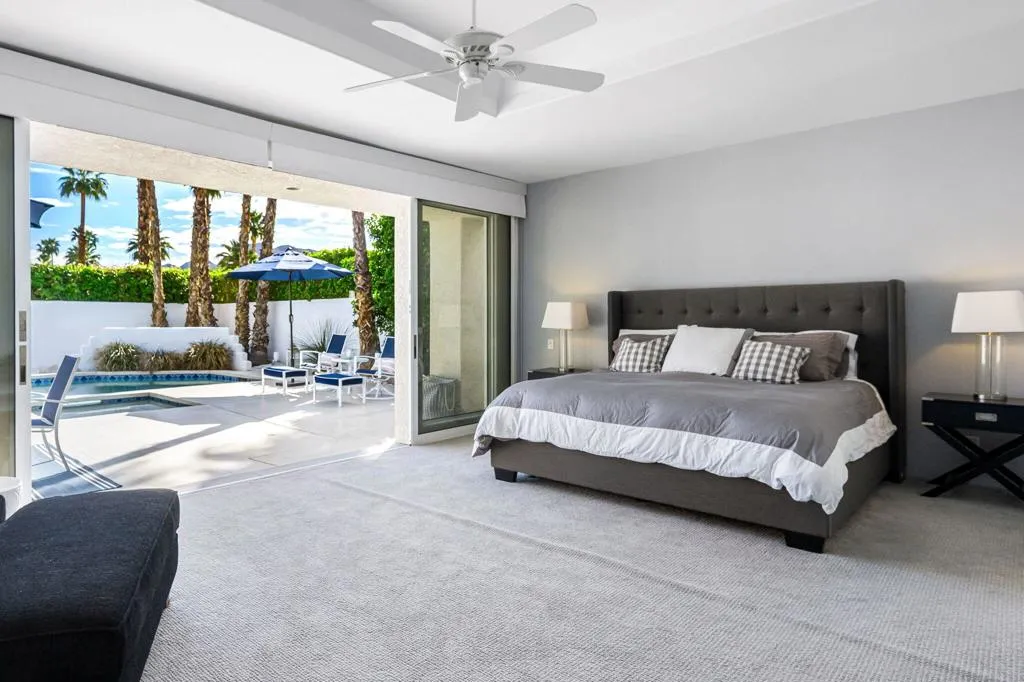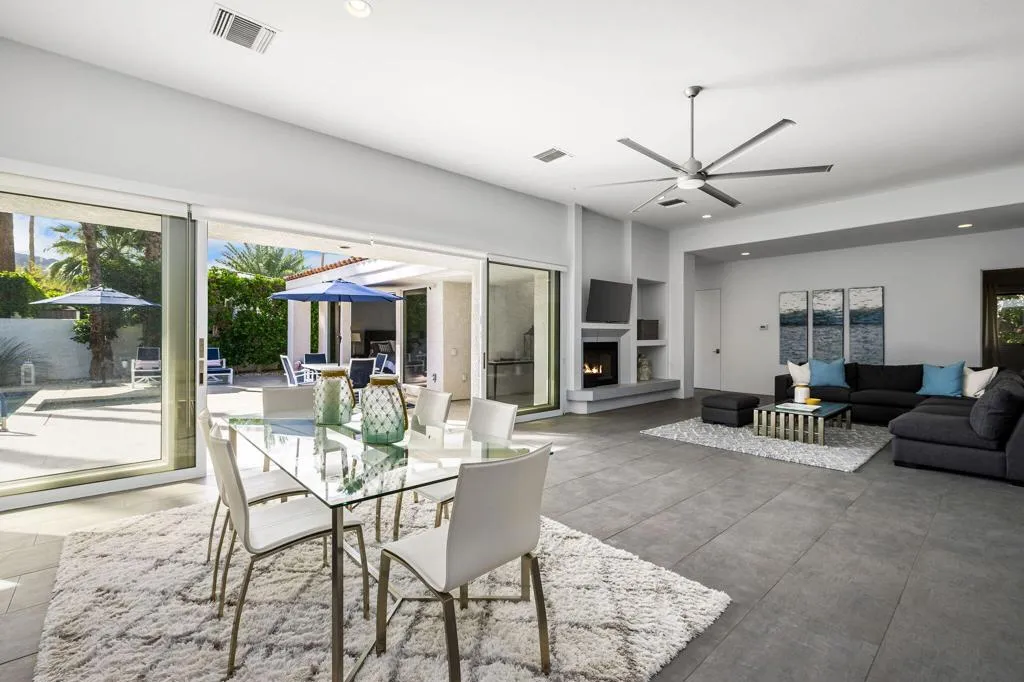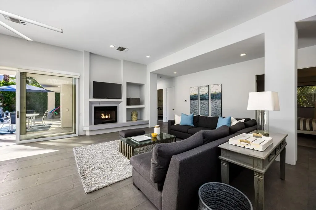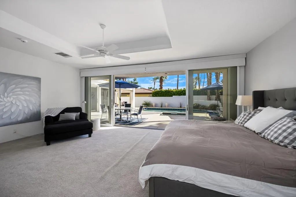 Stunning South-facing Mountain Views highlight this beautifully updated 4-bedroom home, thoughtfully designed and built by renowned developer Philip Manuel. Showcasing quality craftsmanship and timeless design, this exceptional home offers both elegance and comfort in every detail, with upgraded tile flooring and a spacious Living Room featuring a fireplace and multi-slide doors for seamless indoor-outdoor living. The updated Chef's Kitchen features crisp white cabinetry, stainless steel appliances, and a functional layout ideal for both everyday living and entertaining. Updated bathrooms, modern finishes and stylish fixtures. The spacious Primary Suite is a private retreat featuring a spa-inspired bath, walk-in closet, and multi-slide doors that open directly to the Pool and stunning Mountain views. 3 Guest Bedrooms feature en-suite baths providing comfort and privacy and private patios. Step out to the back patio and enjoy beautiful desert evenings by the Pool and Spa surrounded by breathtaking vistas. A 2 car garage plus a dedicated golf cart garage. A rare opportunity to own a meticulously updated home with sought-after southern exposure and spectacular views in prestigious Indian Wells.