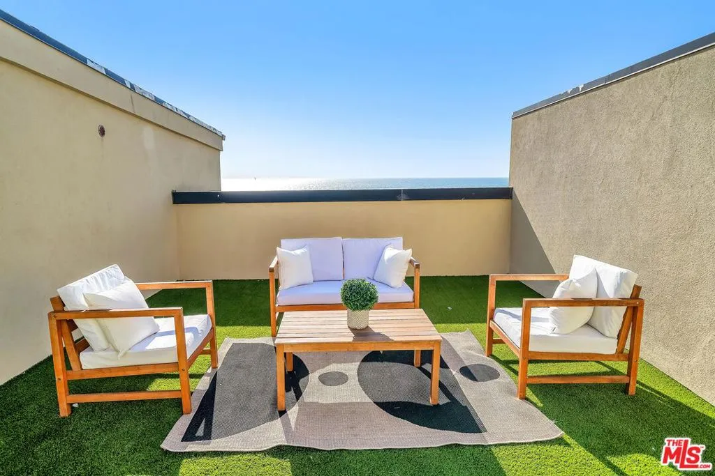 No Expense Spared on this Oceanfront South-Corner Penthouse - Ocean front primary suite + 2 additional bedrooms + 3 bathrooms + Loft/office + roof top deck with panoramic views from Catalina to Malibu. This incredible space features two-story vaulted ceilings, hardwood floors and designer finishes throughout. Expansive living and dining areas open to a massive double balcony, opens with large sliding glass panels. The gourmet kitchen has custom cabinetry, stone countertops, and stainless appliances. The oceanfront Primary suite offers a huge walk-in closet and spa like bath with a separate tub and shower. Tremendous outdoor space includes a 600 sq ft rooftop deck and a tremendous oceanfront balcony off the living and primary bedroom. Flooded with natural light this rare penthouse captures the best of Marina Peninsula living. 3 car garage parking included + elevator building.