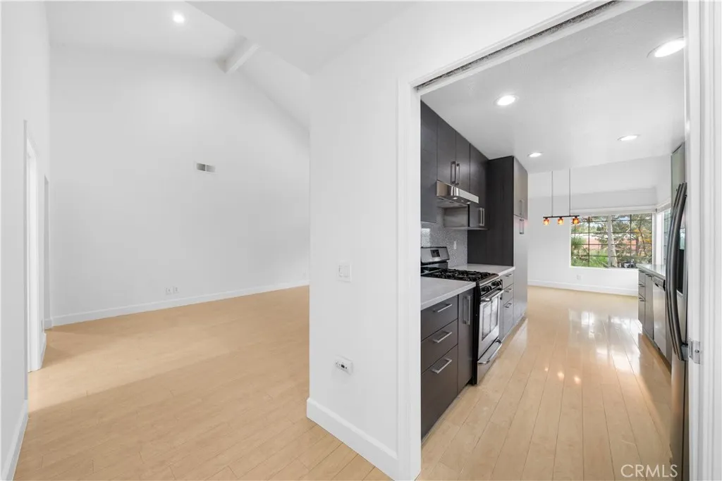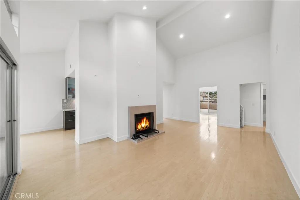 Welcome to this bright and well-maintained end-unit home in West Covina, offering 3 bedrooms, 2 full bathrooms, and approximately 1,502 sq ft of comfortable living space. Featuring high vaulted ceilings and abundant natural light, the open layout feels spacious and inviting. The spacious living area showcases warm wood flooring, recessed lighting, and a modern fireplace, creating an inviting space for both everyday living and entertaining. Two private patio terraces overlook mature trees and tranquil greenbelt views—perfect for relaxing or hosting guests? The remodeled kitchen offers sleek cabinetry, quartz countertops, stainless steel appliances, and a contemporary mosaic tile backsplash. A large window fills the kitchen with natural light and opens seamlessly to the dining area, making it ideal for gatherings and family meals. Bathrooms have been tastefully upgraded with modern vanities, quartz countertops, designer lighting, and glass-enclosed showers with stylish tile finishes. Clean lines and neutral tones create a relaxing, spa-like atmosphere. Additional highlights include updated flooring throughout, modern fixtures, ample storage, and a thoughtful layout that balances openness with privacy. The home has been recently refreshed with interior paint, lighting updates, and features a newer AC system and water heater, offering added peace of mind and making the property truly move-in ready. Residents enjoy access to resort-style HOA amenities, including a swimming pool, spa, and beautifully landscaped grounds. Additional conveniences include an upstairs laundry and storage room and two attached garage spaces. Conveniently located close to schools, shopping centers, dining, parks, and hiking trails, this home offers an excellent combination of comfort, functionality, and location—ideal for both homeowners and investors alike.