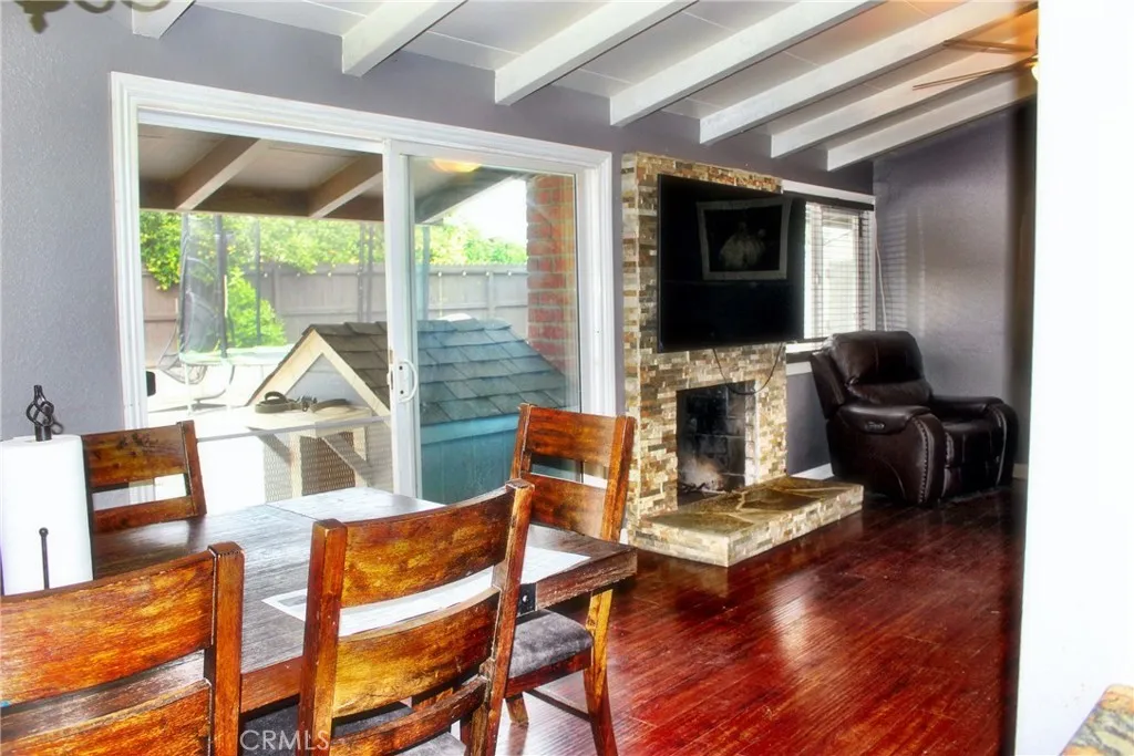 Accessor shows 3 bed 2 bath but the office Den was converted into a 4th bedroom with its own closet, great for a big family. The house features new paint through the outside with newly installed AC unit, the entry of the home features mahogany distress laminate wood flooring through out with quartz wood burning fire place in living room/along with ceiling fans through out the house. The kitchen features granite counter tops with fancy back splash on both sides and plenty of cabinet space.Good size backyard for a great family party.close to FWY and shopping centers.