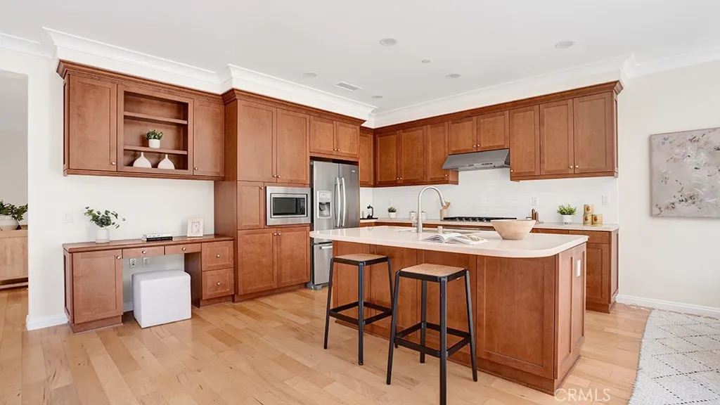 Nestled in the coveted Laguna Altura community, this 3-bedroom, 2.5-bath Siena “Residence 2” offers the best of Irvine living. Thoughtfully upgraded throughout, the home features engineered hardwood flooring, new recessed lighting, and plantation shutters. The open-concept kitchen showcases an oversized island, Caesarstone countertops, maple cabinetry, white tile backsplash, and stainless steel appliances. Upstairs, you’ll find 2 fully tiled bathrooms with the same elegant finishes, a spacious primary suite with a walk-in closet, and a laundry room with ample storage. Ideal for relaxing or entertaining, the living area flows seamlessly to a private backyard with custom pavers and a built-in stone fireplace. Garage is wired for electric car charging. Residents of this 24/7 guard gated community enjoy resort-style amenities including junior Olympic pools, basketball courts, parks and more. This serene retreat is moments away from Laguna Beach, John Wayne Airport, and fine dining, shopping, and entertainment at Irvine Spectrum with easy access to the 405, 133, and 5 freeways. Zoned for award-winning University High School.