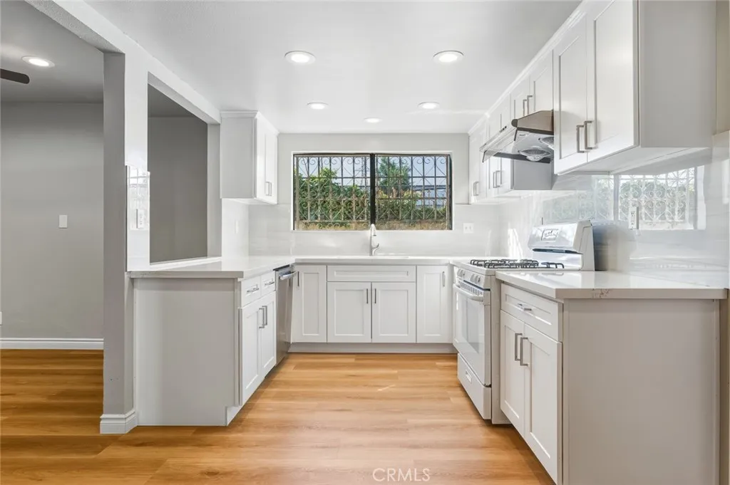 Beautiful two-story single-family residence offering a spacious and functional floor plan with abundant natural light throughout. The home features expansive living and dining areas with vinyl flooring, recessed lighting, and a charming fireplace, creating an inviting space for everyday living and entertaining. The updated kitchen showcases white shaker-style cabinetry, a gas range, modern range hood, generous storage, and a convenient pass-through to the dining area.A sliding glass door connects the interior to a large enclosed sunroom with skylights, providing versatile bonus space ideal for a home gym, playroom, or entertaining area (not included in living square footage). Bedrooms are well-proportioned with vinyl flooring, ample closet space, and neutral finishes. Updated bathrooms include contemporary vanities and modern fixtures.Additional highlights include wide hallways, a decorative staircase railing, an attached two-car garage, and a large concrete backyard offering outdoor flexibility. Move-in ready with excellent space, flow, and versatility for a variety of lifestyles.