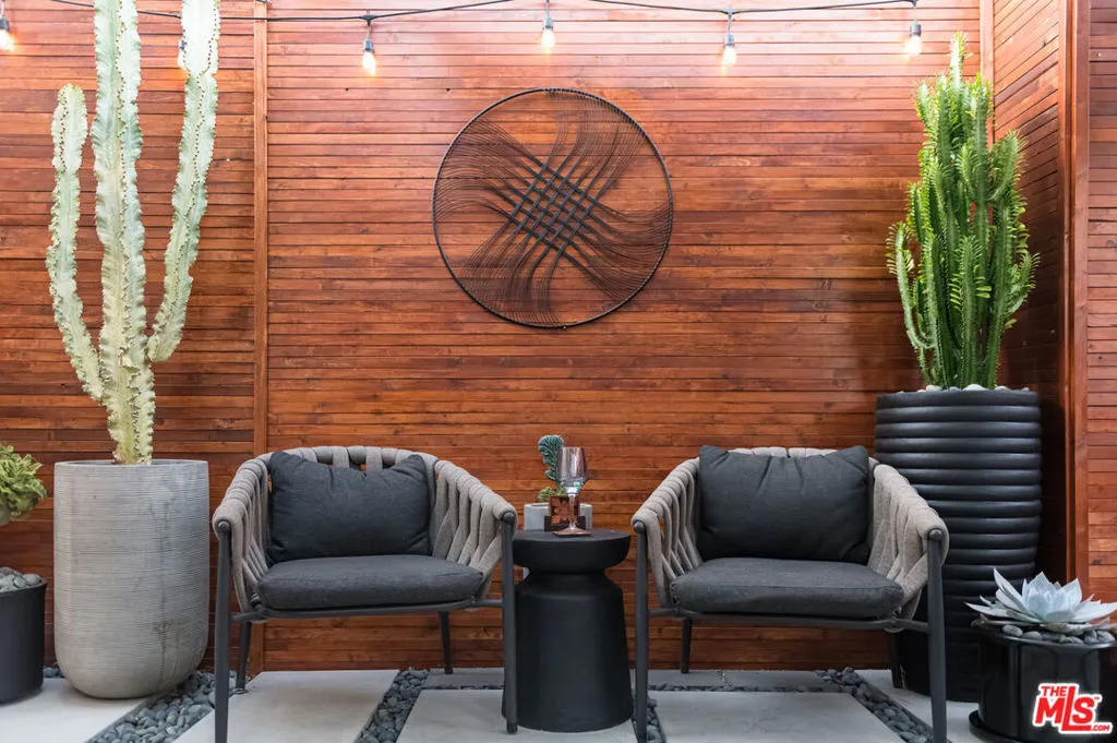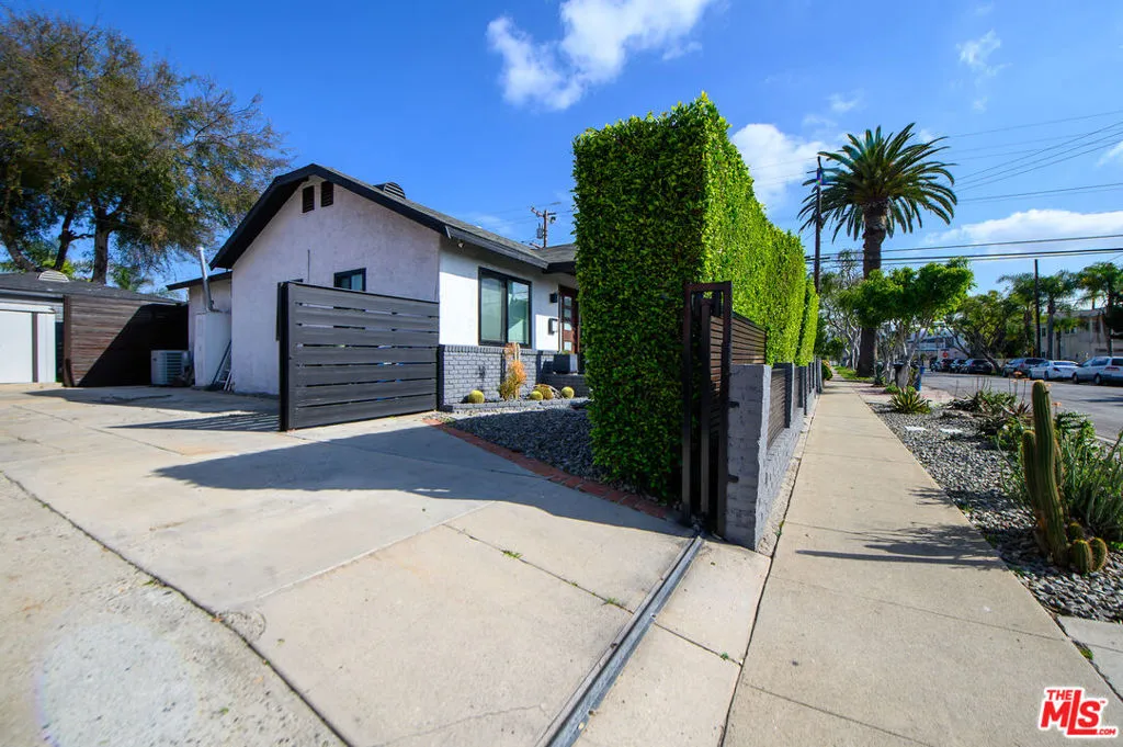 Chic Contemporary California Bungalow just steps from SoFi Stadium...updated, open, and game-day ready with private front & backyards in the City of Champions. Ideal for investors looking to monetize this coveted location or homeowners looking for an affordable condo alternative. This beautiful 2-bedroom blends classic bungalow charm & modern design, but it lives like a 3BR with the 2nd bedroom suite configured with a bonus space used as a home office. The light-filled open floor plan effortlessly flows from living to dining with stylish industrial inspired fixtures and clean architectural lines. The updated kitchen and bathrooms feature sleek, modern finishes, frameless glass and stainless-steel appliances, making everyday living and entertaining feel like luxury. Enjoy true privacy outside in both front & backyard spaces, fully fenced with mature hedges and custom contemporary wood-stained fencing. These outdoor spaces offer an urban oasis with thoughtfully designed drought tolerant landscaping accented with an artistic mix of stones, gravel and perfectly positioned pavers. Enjoy efficient & modern home upgrades like air conditioning, wireless thermostat & lighting and an EV charger. The double gated driveway can accommodate off-street parking for 3 cars & features a mini storage shed. This stunning property is an unrivaled opportunity in this desirable enclave of Inglewood...walking distance from SoFi Stadium, Hollywood Park entertainment center, YouTube Theater, the iconic Forum arena & the new Intuit Dome arena. Perfect for game days, concerts, weekend barbecues, and peace filled evenings basking in the sophisticated aesthetic & secluded outdoor spaces of this beautiful bungalow.