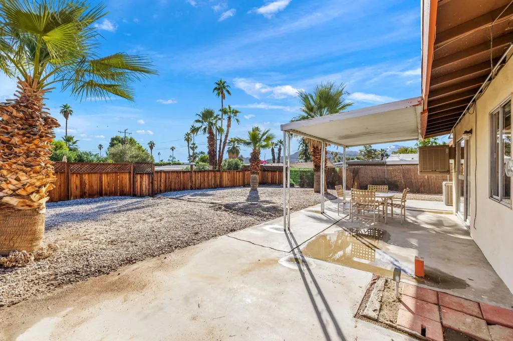 Appraised at 419K, with clear termite and repaired items on request for repairs Situated at the end of a quiet cul-de-sac, this home blends mid-century charm with thoughtful modern updates. Step inside to expansive open living spaces framed by gorgeous sunset views from the front windows. The expansive backyard is perfect for entertaining, gardening, or enjoying your morning coffee as the sun rises. Just beyond the back gate, you'll find a spacious community pool for effortless relaxation. Some valuable upgrades include: new electrical panel, newer oven and stovetop, and a York heating and air system with an energy-efficient mini-split keeping the home comfortable year-round while helping reduce energy costs all installed in 2025. The oversized two-car garage provides ample room for vehicles, storage, or a workshop. Located just minutes from the Palm Desert Soccer Park and the vibrant center of Palm Desert, this home offers character, comfort, and exceptional value in a premium location. Whether you're a first-time buyer or searching for a desert getaway, this welcoming property is ready to make you feel right at home.