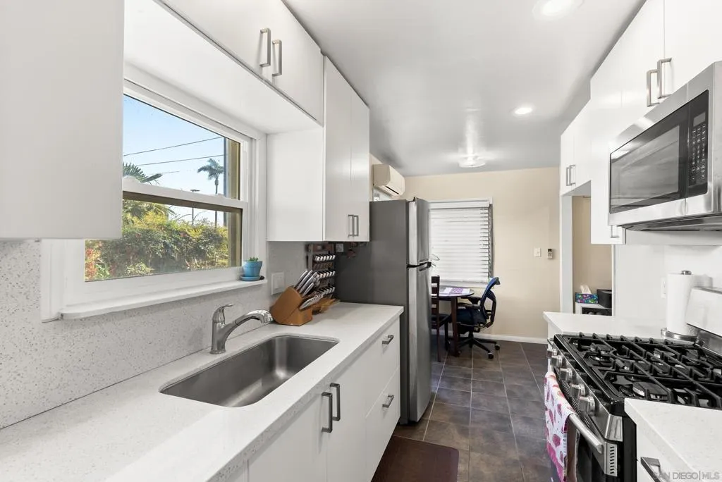 Situated on a desirable street in the heart of Mission Hills/Hillcrest, this thoughtfully maintained two-unit property offers a versatile living opportunity as a well-appointed primary residence and a separate secondary unit. Both units enjoy stand-up attic storage and share a privately enclosed private yard, creating a functional and flexible outdoor space. There are 2 parking spaces in front. The main house is a spacious 2-bedroom, 2-bath home offering 1,298 sq ft of comfortable living. Interior features include hardwood floors, a remodeled kitchen with quartz countertops, updated bathrooms, central heat and air, and a formal dining room ideal for everyday living or entertaining. A large storage room/pantry located just off the kitchen adds valuable functionality and convenience. Owned solar provides significant energy savings. The secondary unit is a 1-bedroom, 1-bath residence with 699 sq ft, offering excellent flexibility as a rental, guest space, or extended family accommodation. The unit features quartz kitchen counters, a gas stove, a cozy breakfast nook, faux wood blinds, manufactured wood flooring, and a generously sized bedroom with a built-in closet approximately twice the length of a standard closet. A charming retro yellow tiled bathroom adds character and cottage-style appeal.This property offers a unique combination of livability, flexibility, and location in one of San Diego’s most sought-after neighborhoods. Zoning: RM 3-9 One unit per 600sf of lot on a 5200sf parcel. Complete Communities: Tier 2: 8.0 FAR 60ft height Transit overlay- reduced parking req Situated on a desirable street in the heart of Mission Hills/Hillcrest, this thoughtfully maintained two-unit property offers a versatile living opportunity as a well-appointed primary residence and a separate secondary unit. Both units enjoy stand-up attic storage and share a privately enclosed private yard, creating a functional and flexible outdoor space. There are 2 parking spaces in front. The main house is a spacious 2-bedroom, 2-bath home offering 1,298 sq ft of comfortable living. Interior features include hardwood floors, a remodeled kitchen with quartz countertops, updated bathrooms, central heat and air, and a formal dining room ideal for everyday living or entertaining. A large storage room/pantry located just off the kitchen adds valuable functionality and convenience. Owned solar provides significant energy savings. The secondary unit is a 1-bedroom, 1-bath residence with 699 sq ft, offering excellent flexibility as a rental, guest space, or extended family accommodation. The unit features quartz kitchen counters, a gas stove, a cozy breakfast nook, faux wood blinds, manufactured wood flooring, and a generously sized bedroom with a built-in closet approximately twice the length of a standard closet. A charming retro yellow tiled bathroom adds character and cottage-style appeal. This property offers a unique combination of livability, flexibility, and location in one of San Diego’s most sought-after neighborhoods. Zoning: RM 3-9 One unit per 600sf of lot on a 5200sf parcel. Complete Communities: Tier 2: 8.0 FAR 60ft height Transit overlay- reduced parking requirements