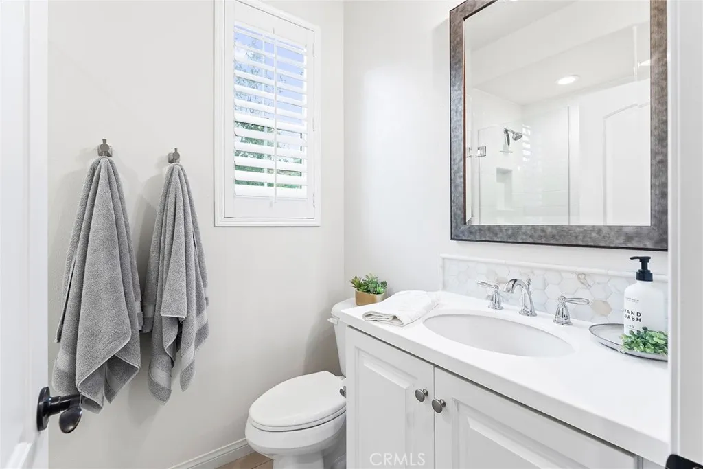 Outstanding corner home offering comfortable 55+ resort-style living in Rancho Mission Viejo. The open main living area features wide plank French oak flooring, 9-foot ceilings and a kitchen with seating at the granite island, stainless steel appliances, soft close drawers, abundant cabinetry, and a separate dining area flowing into the family room. Sliding doors open to a covered patio and additional side yard space for easy indoor-outdoor living. The main level includes a primary suite with custom woodwork, dual sinks, marble backsplash, zero-entry shower and spacious walk-in closet. Also on the main level is an additional bedroom, full bath, spacious laundry room with ample cabinetry, and direct garage access. Upstairs offers a large private retreat with a secondary living area, bedroom and full bath. The home also includes AC, whole house fan, fresh interior paint and crown molding, as well as plantation shutters throughout. Unwind at the 55+ amenities, including but not limited to the Getaway Clubhouse (a short walk away) or The Outlook where you can enjoy the lap pool, cabana space, indoor-outdoor dining areas, barbecues, fire pits and TVs. Additional amenities include fitness centers, social clubs, activities and more. When family/friends visit, venture over to the nearby Hilltop Club pool, bar, gym, spa, bocce ball and arcade. Close to shopping, dining and South Orange County destinations. Do not miss this exceptional opportunity!