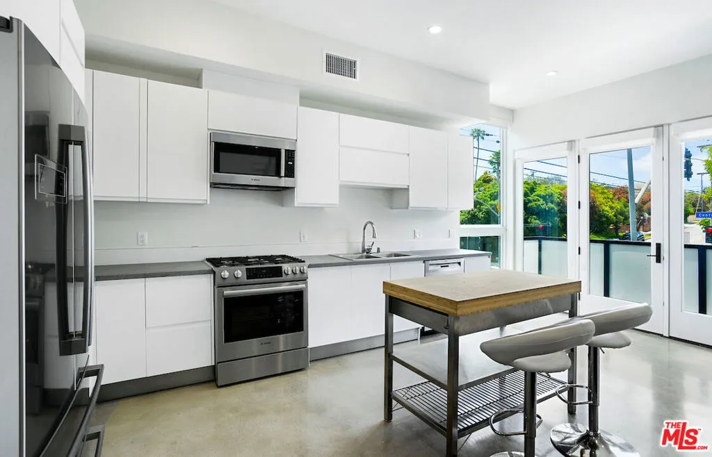 Limited-time move-in special: move in now and enjoy the rest of April rent-free. A great opportunity for immediate savings! Rare Townhouse built in 2018 with designer-quality finishes throughout. This Bright & Modern Million Dollar + Large 2 beds, 2 baths, townhome (Approximately 1650+ Sq.Ft) with high ceilings, an entertainer's open floor plan & large (approximately 400+Sq.Ft) private rooftop deck. Gourmet kitchen with high-end appliances (Bosch), sleek cabinetry, premier countertops, and large windows to bring in the natural light. Each bedroom has an en suite bathroom, plus the main-level guest bath. In-unit laundry. The lower level (Entrance level) has a bright flex space, perfect for a home office, gym, or creative studio. Close to Freeways, the Beach, the Expo line, Ocean Park Offices, Restaurants, and Shops. Gated side-by-side parking. DELIVERED UNFURNISHED (The furnishings shown in the photos are those of a previous tenant)