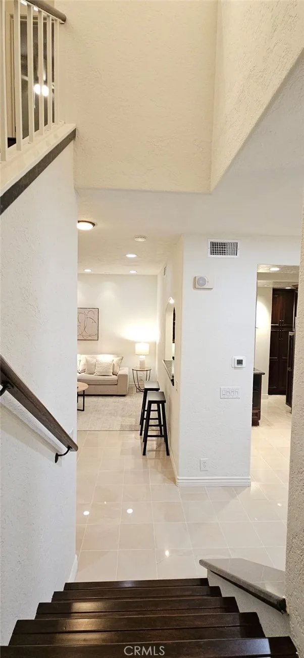Welcome to this beautifully remodeled luxury condo in a superb end-unit location of the Mission Courts II community. Stroll into this turnkey home with incredible ambiance, vaulted ceilings upstairs and downstairs, custom and recessed lighting throughout. The heart of the home features a Chef’s dream kitchen showcasing high-end JENN-AIR appliances, convection/microwave oven, induction cooktop, granite counters, and solid cherry wood cabinets, and the inside of the condo has brand new paint and lighting, custom blinds, Ilva premium Argentinian porcelain tile downstairs and engineered wood flooring upstairs. The condo also includes a newer Heating and Air conditioning system and a custom black glass remote fireplace with lighting in the living room. When you wander upstairs you will be led to two very spacious bedrooms, both with en-suite bathrooms, large closet spaces and scenic community views. There is no one above or below and the end unit location also offers much privacy and serenity. Also included is a convenient inside laundry unit with washer and dryer included and a newer dual pane sliding door that leads to a large private patio. The property includes one garage parking space and storage, and there is plenty of other open parking outside for owners and guests. You will truly appreciate this spectacular Rancho Santa Margarita community, close to top rated schools, restaurants, shopping, and a short walk to the Rancho Santa Margarita Lake & Beach Club (access and membership included). There are also nearby tennis courts and community pools, including a separate pool, spa and children’s play area within Mission Courts II. The complex is FHA and VA approved. This is a beautiful home that is a MUST SEE!