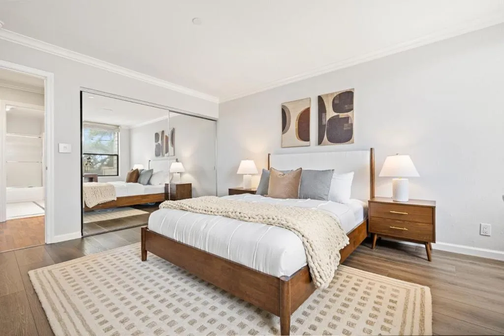 Welcome to 1500 Sherman Avenue #3C - a spacious and inviting 2-bedroom, 2-bath condominium offering over 1,400 square feet of comfortable living space in the heart of Burlingame. Perfectly positioned for convenience and lifestyle, this home is just moments from the shops and dining of Broadway Burlingame, nearby parks, and top-rated schools including Roosevelt Elementary School. Inside, youll find luxury vinyl flooring throughout and a bright, open-concept layout seamlessly connecting the kitchen, living, and dining areas - ideal for both everyday living and entertaining. Step out onto the living room balcony and enjoy the stunning presence of a gorgeous redwood tree, creating a peaceful, natural backdrop. The oversized primary suite is a true retreat, featuring a huge walk-in closet complete with a custom built-in organization system. The en-suite bath offers dual sinks and a fabulous skylight that fills the space with natural light. Additional highlights include a sizable storage closet, in-unit laundry, two assigned secure parking spaces, and access to a serene communal outdoor area. This home offers an exceptional opportunity to enter iconic Burlingame living - dont miss it!