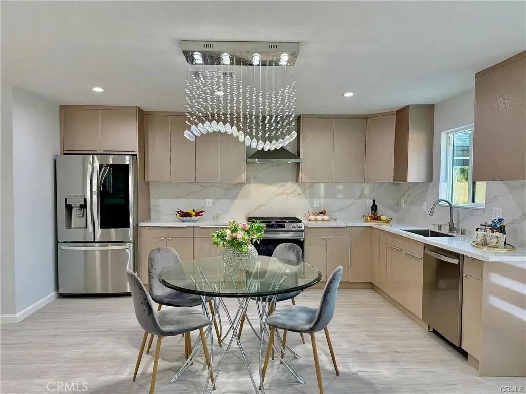 Welcome to this one-of-a-kind Rossmoor compound offering two separate gorgeous homes. The Main House – 3 bedrooms, 2 baths. The ADU – 2 bedrooms, 2 baths. This beautifully upgraded property sits on a spacious 8,264 sq.ft. lot. A stunning remodeled main house has 1,736 sq.ft. of modern living space. A beautiful metal fence with automatic sliding door enhances its curb appeal. Neutral waterproof vinyl flooring, elegant chandeliers, and recessed lighting throughout. The cozy living room features a striking natural stone, wood-burning fireplace. The gourmet kitchen with gorgeous quartz countertop is complete with a 5-burner cooktop, advanced Smart Slended IQV technology rangehood, built-in microwave/oven combo, and high-end Samsung Bespoke appliances, including a smart white-glass dishwasher and 4-door French-door refrigerator with a beverage center. Both bathrooms are beautifully remodeled with frameless LED wall vanity mirrors. An indoor laundry area includes a washer and dryer for added convenience. A paved concrete spacious yard separates the newly constructed, fully permitted ADU (Accessory Dwelling Unit) which boasts nearly 1,000 sq.ft. of sophisticated living space with its own private address. The open-concept layout includes a bright living area with stylish wall sconces, recessed lighting, and a formal dining area under an elegant crystal chandelier. The sleek kitchen features a 5-burner gas range with rangehood, built-in microwave/oven combo, dishwasher, and a premium LG Instaview 3-door refrigerator. The spacious primary suite offers a large walk-in closet with built-in organizers and a vanity with lighted drawers. The secondary room with a walk-in closet and organizer is across the hallway bath. It also includes an in-unit laundry area with washer and dryer. Located in the award-winning Los Alamitos School District, this property is more than a home—it’s a savvy investment. Whether utilized as a high-end rental, a guest house, or a private compound for extended family, this impressive Rossmoor gem is a rare find and a must-see.