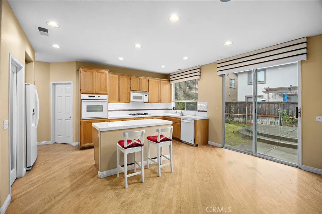 Welcome to this spacious single-family home nestled in the highly desirable East Terra Vista community of Rancho Cucamonga. Situated within a secure gated neighborhood, this residence offers both comfort and peace of mind in a prime location. The pleasantly designed floor plan features a bright and airy living room, along with a separate family room complete with a cozy fireplace and sliding glass door leading to the backyard. Creating a seamless indoor-outdoor living experience. A generous dining area provides the perfect setting for everyday meals and memorable gatherings. A convenient downstairs bedroom and full bathroom offer flexibility for guests, multi-generational living, or a private home office. The kitchen features a functional layout with a walk-in pantry, a large center island, built-in oven, and a sink overlooking the backyard garden. It is ideal for both daily cooking and entertaining. Step outside to enjoy a manageable and private backyard, perfect for outdoor activities, gardening, hosting gatherings, or simply relaxing in your own retreat. Ideally located near top-rated schools, shopping centers, dining, and major freeways, this home combines comfort, security, and convenience A wonderful opportunity in one of Rancho Cucamonga’s most sought-after communities.