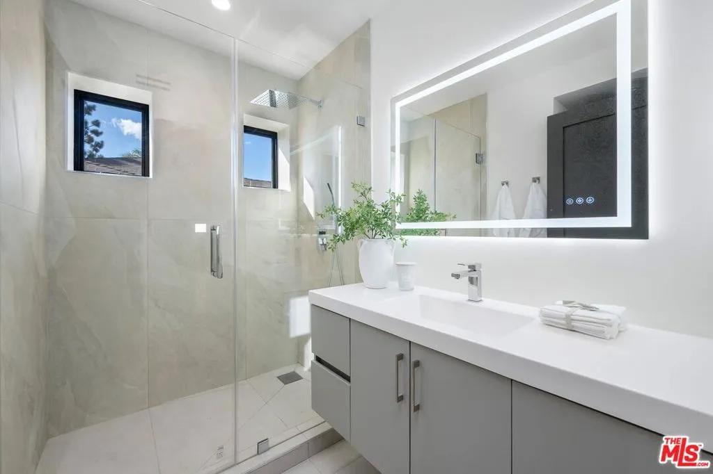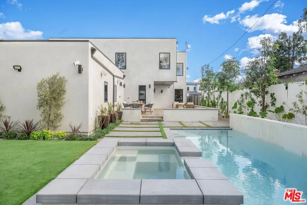 Presenting a newly remodeled corner-lot residence in Studio City filled with multiple living areas and generous outdoor space, designed for an elevated lifestyle. Thoughtfully reimagined with an open floor plan, soaring ceilings, and a clean contemporary aesthetic, this 4BD/4BA home plus office blends style and functionality at every turn. Warm flooring guides you through the main living and dining spaces, which flow seamlessly together and are enhanced by built-in storage and a custom minibar complete with wine cooler, ideal for entertaining. The sleek kitchen is outfitted with brand-new ZLINE appliances, including a six-burner range, complemented by striking countertops and bar seating perfect for casual gatherings. The main level features a light-filled bedroom with a full bath just off the hallway, along with a versatile bonus room well suited for a home office. Adjacent to the kitchen, an additional living area with a modern fireplace and sliding glass doors opens effortlessly to the backyard. A stylish powder bath nearby provides convenience for guests. Upstairs, three additional bedrooms await, including a luxurious primary suite occupying its own private wing. This retreat boasts two custom walk-in closets, a stunning fireplace, and an en-suite bath with an enclosed step-in shower, soaking tub, dual floating vanities, and a water closet with an automatic toilet. Two secondary bedrooms offer ample storage and share a beautifully appointed bathroom with dual vanities and a spa-like shower. Overlooking the main living spaces, a cozy upstairs loft further enhances the home's airy, open feel. Outdoors, the entertainer's backyard invites year-round enjoyment with a sparkling pool and spa, an expansive turf area with fire pit, and multiple gathering spaces for relaxing or hosting. Additional highlights include a three-car garage with direct interior access, abundant storage throughout, and a dedicated laundry room with sink. Ideally located moments from Tujunga Village and Studio City's favorite boutiques and cafes, this thoughtfully redesigned home captures the essence of elevated California living.