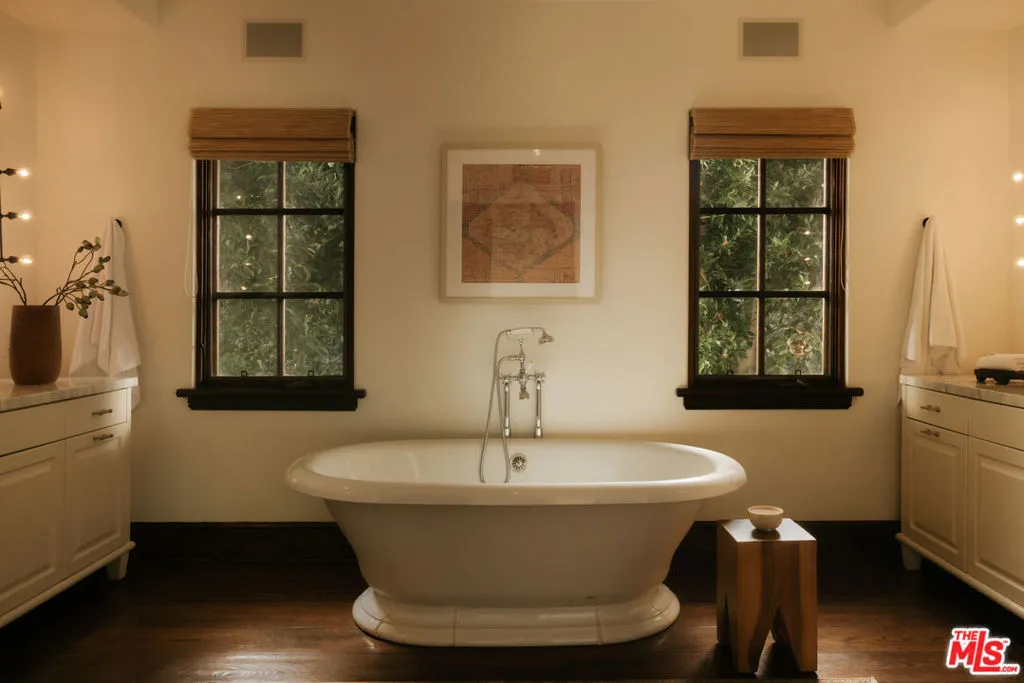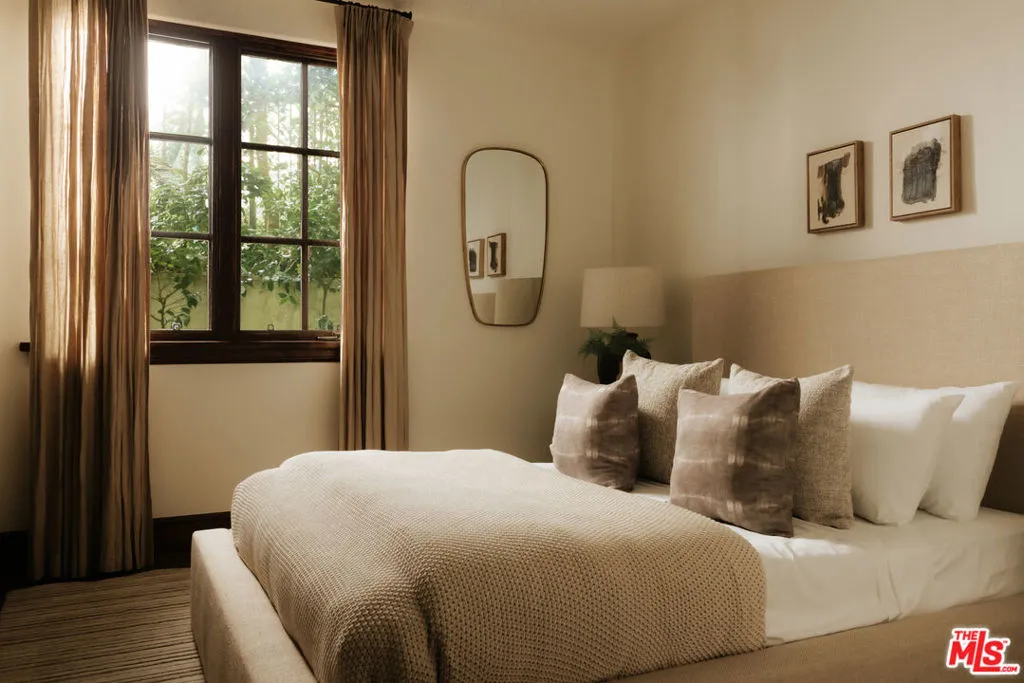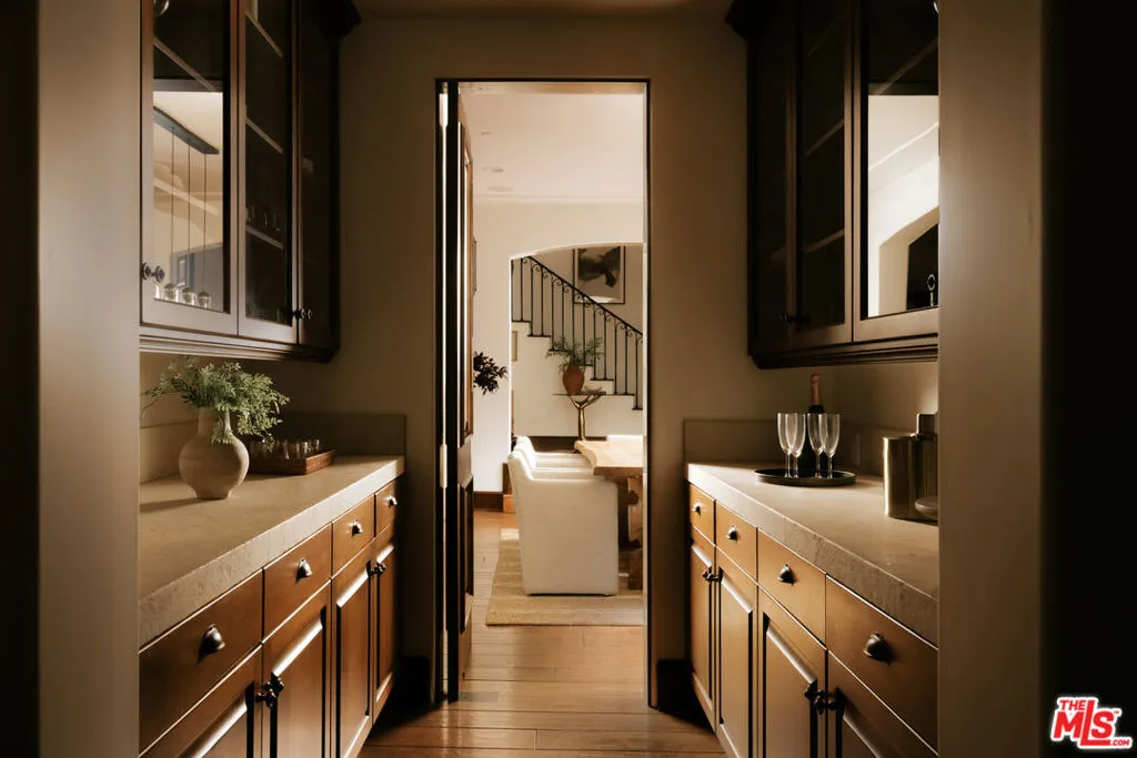 Gracefully set in the heart of Brentwood, this timeless Spanish estate is a masterclass in scale, elegance, and refined California living. Encompassing approximately 5,773 square feet, the residence offers five bedrooms and six bathrooms, thoughtfully curated to balance grand-scale entertaining with effortless everyday luxury. A dramatic entry introduces a series of beautifully proportioned interiors defined by soaring ceilings, rich architectural detail, and an abundance of natural light. Formal living and dining rooms unfold with quiet grandeur, seamlessly transitioning into inviting gathering spaces designed for both intimate evenings and vibrant celebrations. Expansive doors dissolve the boundary between indoors and out, embracing the quintessential Southern California lifestyle. At the center of the home, the chef's kitchen serves as both showpiece and sanctuary, appointed with premium appliances, generous preparation spaces, and a sun-drenched breakfast nook ideal for leisurely mornings or lively gatherings. Each bedroom suite is privately situated and luxuriously appointed, complete with walk-in closets and refined baths. The primary suite offers a serene retreat, defined by scale, privacy, and spa-inspired indulgence. The grounds evoke the ambiance of a private resort. Mature landscaping frames a sparkling pool, while multiple terraces and lounging areas provide an exquisite backdrop for alfresco dining, sophisticated entertaining, or tranquil repose. Additional amenities include a temperature-controlled wine cellar, integrated sound system, smart home technology, and a comprehensive security system, all enhancing the home's comfort and discretion. Located moments from Brentwood's most celebrated dining, boutiques, parks, and top-rated schools, 1046 N Norman Place represents a rare offering where architectural heritage, modern luxury, and enduring prestige converge.