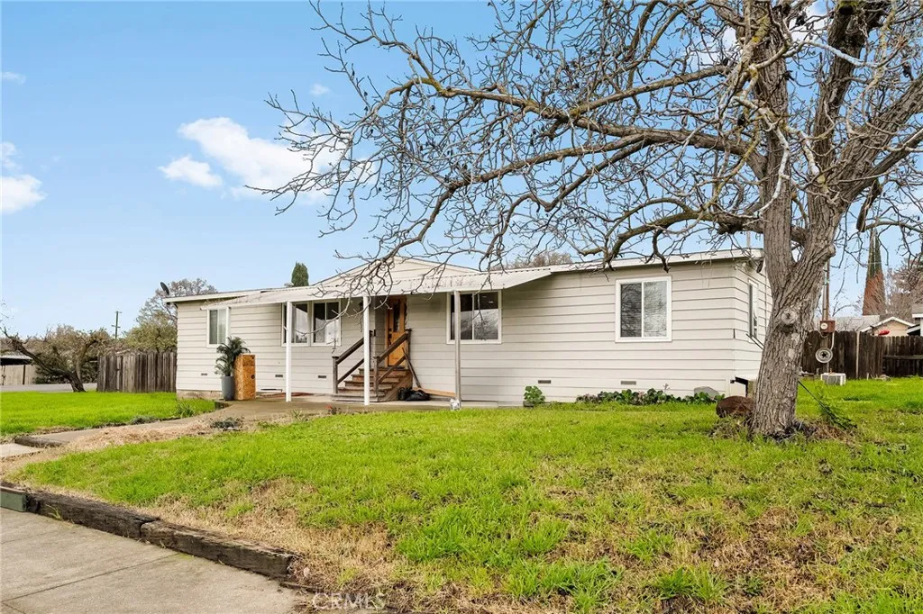 Welcome to 451 4th Street, right in the heart of Hamilton City, a community known for its agricultural roots, wide open skies, and genuine small-town charm. Life here moves at a different pace. The streets are wide, the neighbors wave, and everything you need is just minutes away. From the local park down the street with a full basketball court, playground, and open green space, to Hamilton Elementary, Hamilton High, the Community Hall, and some of the best local taco trucks around, this town is rich in culture and community. And when you need to head out, Chico and I-5 are both within an easy 20-minute drive. Set on a corner lot with extra space to breathe, this manufactured home on a permanent foundation offers both flexibility and comfort. With 3 bedrooms and 2 bathrooms in a thoughtfully designed split floor plan, everyone has their own space while still enjoying the natural flow of the home. Inside, the layout unfolds beautifully. To the right of the entry, a spacious dining room connects seamlessly to the kitchen, making hosting and everyday meals feel effortless. Updated flooring runs through the main living areas, and the kitchen is both functional and inviting with granite countertops, decorative tile backsplash, dual ovens, gas range, pantry storage, and generous prep space. Beyond the dining area, two guest bedrooms and a remodeled bathroom provide comfort and style, while the primary suite is tucked privately on the opposite side of the home. This retreat offers room to unwind, complete with a soaking tub, separate shower, walk-in closet, and space ready for your personal touch. The living room opens toward a cozy dining nook and sunroom, bringing in natural light and extending your living space year-round. Step outside to a covered concrete patio that expands into a larger entertaining area, perfect for barbecues, gatherings, or quiet evenings at home. A dedicated dog run, two storage sheds, and additional off-street parking add everyday practicality to the property. With a new roof installed in 2022, thoughtful updates throughout, and a location that truly captures the spirit of Hamilton City, 451 4th Street is more than a home. It is an opportunity to be part of a tight-knit community while enjoying space, comfort, and convenience.