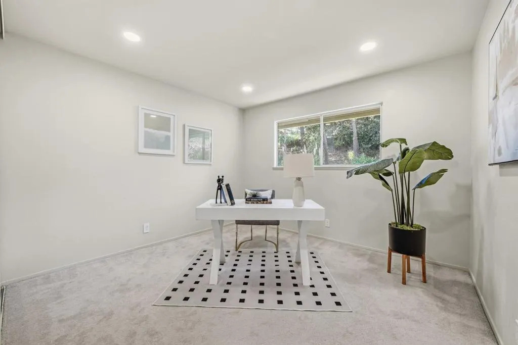 Experience "turn-key" luxury in this meticulously reimagined home, perfectly positioned in the center of the community with the rare privacy of no rear neighbors and serene, tree-lined views. The open-concept interior blends high-end modern upgrades with effortless functionality, featuring a reconfigured chefs kitchen with Samsung appliances and a built-in Reverse Osmosis system, wide-plank flooring, and a stunning designer fireplace. Every detail has been elevated, from the customizable recessed lighting to the primary suites custom walk-in closet and contemporary bath with sleek black hardware. The home is packed with practical luxuries, including AT&T fiber-ready connectivity, a high-capacity double-tier washer, and a sun-drenched hallway bath with a bright skylight. Ideally located near Highway 92 and the College of San Mateo campus with an abundance of guest parking right at your doorstep, this home offers a sophisticated sanctuary for modern living.