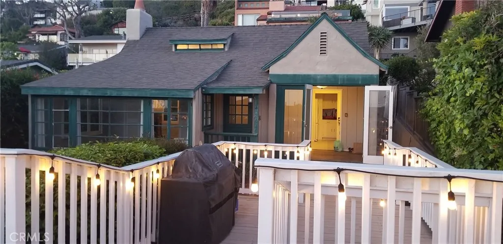 Enjoy breathtaking, million-dollar ocean views from this beautifully maintained single-story detached home, ideally situated in the serene upper area of Victoria Beach. Conveniently located just a short walk to the beach via the Pacific Coast Highway underpass, offering safe and easy access without crossing PCH. This charming single-family residence features a private gated front courtyard, two bedrooms, one bathroom, and a two-car garage with a roll-up door. Warm wood flooring and elegant tile accents enhance the home's inviting atmosphere. The spacious living room boasts vaulted ceilings, a ceiling fan, ample closet space, and a large fireplace, creating a comfortable and welcoming setting. The sunny kitchen is equipped with updated appliances, granite countertops, and includes a refrigerator. A washer and dryer are also provided for added convenience. Enjoy your morning coffee in the cozy dining nook with partial ocean views, or unwind on the expansive patio — the perfect place to take in the ocean and stunning sunset vistas. Pets are welcome.