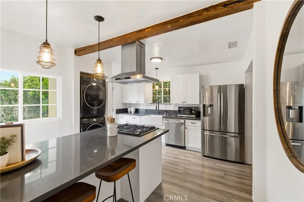 Inside the 1,587 sq ft main residence are new windows, new light fixtures, new interior paint, new floors and baseboards, which create a clean, move-in-ready feel, while a beautiful fireplace anchors the living space. The kitchen and bathrooms keep the aesthetic sharp with subway tile finishes, and practical touches like a stackable washer and dryer in the kitchen make everyday routines easy. Brand new central heating and cooling, a newer water heater, and a newer control panel add confidence behind the scenes. The ADU is a true second living space, complete with its own kitchen and bathroom, split A/C unit, and a tankless water heater, ideal for extended stays, a private workspace, or additional income potential, all with the convenience of separate addressing.