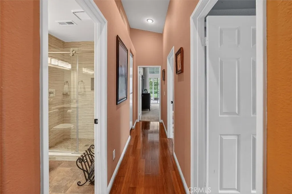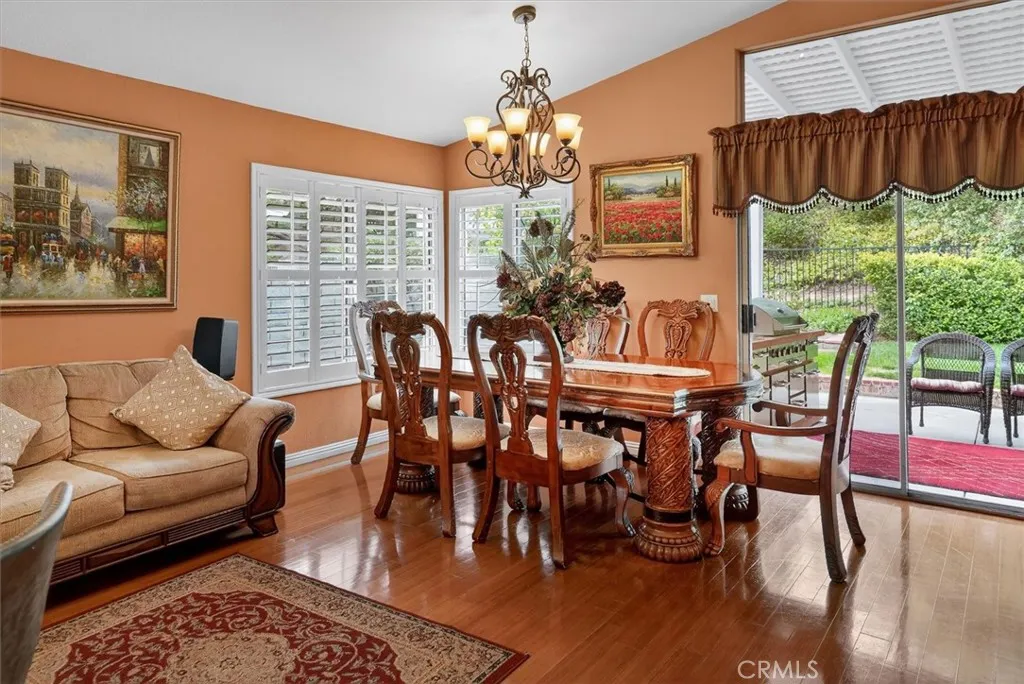 Enjoy peaceful Stevenson Ranch living with a charming Single-family home in a cul-de-sac with 3 bedrooms plus flexible 4th room ( perfect for an extra bedroom, office or home gym), 2 updated bathrooms hardwood floors through out this beautiful home and carpets in bedrooms. . The open kitchen has granite counters with stainless appliances and center island, plenty cabinets and a dining area. There is Plantation shutters , ceiling fans , Recess lights cozy fireplace in the living room . Down the hall you have the Laundry room that provides access direct to the garage and the extra room . The master bedroom has direct access to the back yard has a spacious walk in closet. Stunning backyard oasis featuring a covered porche, mature trees and a natural hillside for ultimate privacy. Low HOA fees , close to parks and Valencia amenities ideal for family or entertainment.