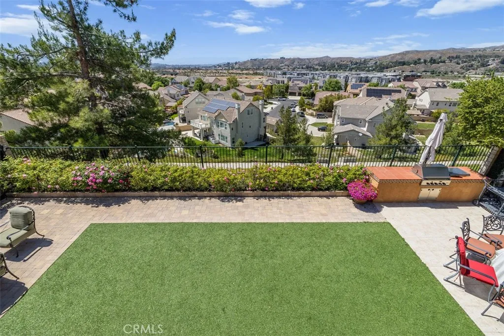 Once a Model, now a Supermodel. Luxury living is elevated in this stunning 5-bedroom, 4-bath home that has gone from model home to absolute supermodel status. Carefully curated for those who crave the perfect blend of function and opulence, every inch of this residence is designed to impress. Step inside through a custom wrought iron front door and be greeted by imported Spanish tile inlay floors and a luminous Schonbek crystal chandelier. The open-concept layout flows into a designer kitchen featuring a dramatic black Galaxy granite backsplash, oversized island, walk-in pantry, and built-in wine fridge—perfect for both daily living and entertaining in style. Serve up gourmet meals in the formal dining room complete with a cozy fireplace. Downstairs offers a private bedroom and full bath, ideal for guests or multi-generational living. Let the outdoors in when you open up 4-panel Fleetwood type glass doors that lead to a raised tile patio and a professionally landscaped low maintenance backyard. Entertain with a custom BBQ and an electric patio sunscreen—all while enjoying panoramic city views. Upstairs, find a spacious in-law suite with a mini kitchenette, a large loft for flexible living, and a laundry room for added convenience. The expansive primary suite includes its own balcony, spa like bath with separate tub and shower, dual vanities and walk in closet. It's your own private retreat above it all. Other premium features include, elegant chandeliers in both the living and dining rooms LED accent lighting for art throughout the downstairs, a 3-car garage and newer custom landscaping. This home isn’t just beautiful—it’s built to impress. From its showstopping finishes to its thoughtful floorplan, it truly is a supermodel in the world of luxury homes.