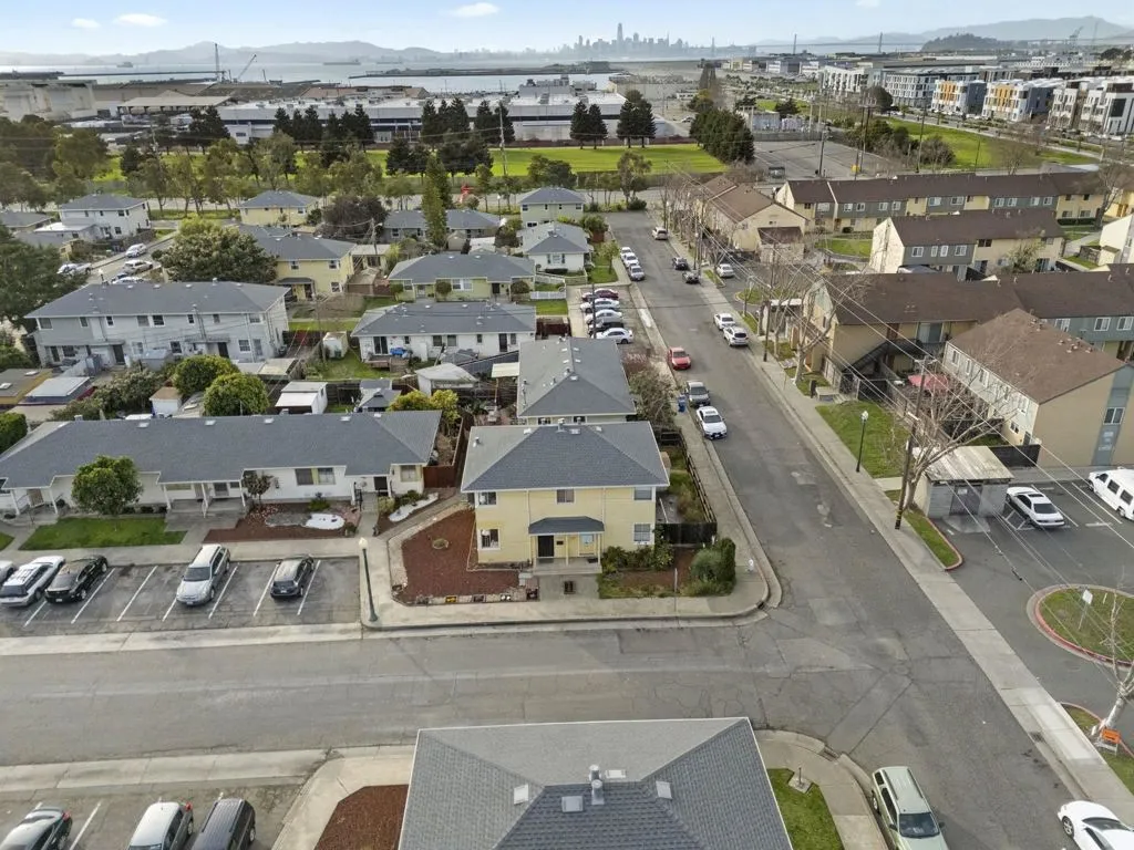 Tucked into a desirable corner location within the Woodstock Co-Op of Alameda, this expanded two-story home offers a rare and thoughtfully enhanced floor plan. Unlike the standard layout, this residence includes a third bedroom and half bath on the main level, creating added flexibility for guests, a home office, or multi-generational living. The interior feels bright and refreshed with an updated kitchen that flows seamlessly into the living and dining areas. Luxury vinyl plank flooring runs throughout, complemented by fresh interior paint, updated electrical, a new water heater, and in-unit laundry. The corner positioning brings added privacy and natural light, enhancing the home’s open feel. Upstairs, two bedrooms and a full bath provide comfortable separation, while the additional main-level bedroom and half bath truly set this home apart. Conveniently located near Alameda Landing, Webster Street, Alameda Naval Base, and the SF Ferry buildings. Enjoy the plentiful of breweries, local gyms, Alameda's Antique Fair, and weekly farmers' market! A rare opportunity to own a uniquely expanded and move-in ready home in Woodstock.
