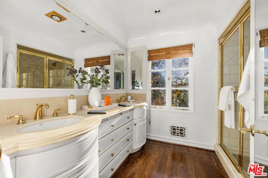 This exquisite Traditional Georgian residence represents the epitome of refined living, nestled within the coveted enclave of Little Holmby. Originally constructed in 1936, the home is gracefully sited on a private, tranquil lot framed by elegant terraced gardens in front and beautifully landscaped rear grounds complete with a sparkling pool, spa, and verdant lawn. A stately formal entry introduces interiors defined by timeless architectural detail and classic proportions, highlighted by classic herringbone flooring in the front hall. The gracious living room, bathed in natural light, features French doors that open seamlessly to the lush backyard - an idyllic setting for alfresco dining and summer gatherings. The formal dining room overlooks the manicured front terraces and flows effortlessly into the inviting family room and well-appointed chef's kitchen. Designed with both function and sophistication in mind, the eat-in kitchen offers generous counter space, a substantial center island, abundant cabinetry, and ample storage - ideal for the discerning culinary enthusiast. Seamlessly connected to the main living areas, the kitchen opens directly to the gracious backyard, creating a natural flow for indoor-outdoor entertaining. A separate laundry room is conveniently located off the kitchen and includes a secondary staircase providing access to the upper level. Upstairs, four well-proportioned bedrooms, two-and-a-half baths provide comfortable and versatile living accommodations. Ideally situated near Century City, Beverly Hills, and University of California, Los Angeles, this distinguished residence also features hardwood flooring, new carpeting, a two-car direct-entry garage with access from Birchwood Drive, an electric vehicle charger, and a security system.