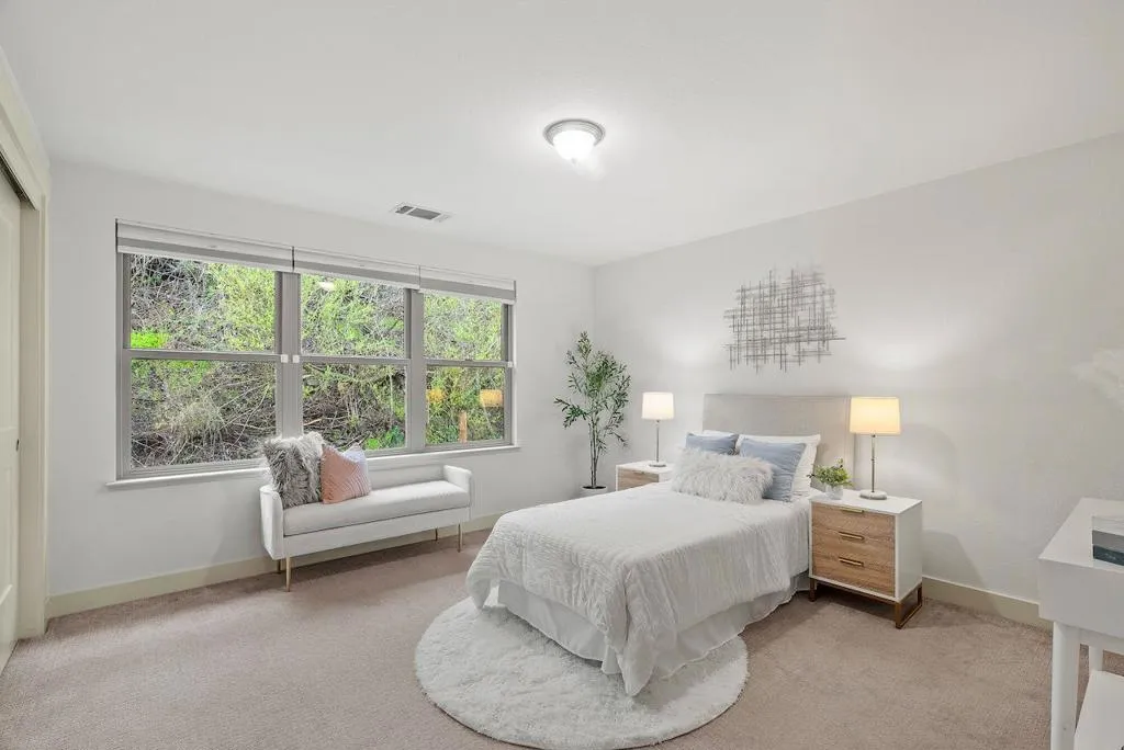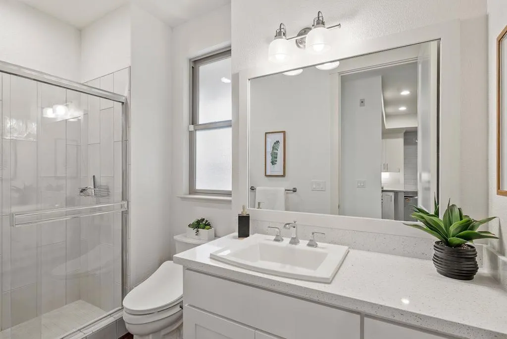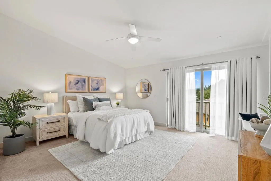 Absolutely fabulous and shows like it has never been lived in! This spacious end-unit home features soaring ceilings and is bathed in natural light from numerous high windows and skylights. Ideal floor plan with one bedroom and full bath on the main level, plus a luxurious Primary Suite and two generously sized guest bedrooms upstairs. The stunning kitchen offers a large quartz slab island and countertops, abundant cabinetry, and stainless steel appliances, all flowing seamlessly into the Great Room with combined living and dining areas. Step outside to your private, fenced patio, perfect for Al Fresco dining and relaxing. Upstairs, the Primary Suite is a true retreat with a large walk-in closet, spa-like en suite featuring a double walk-in shower, and a private balcony. A spacious 2-car garage and dedicated mud room/laundry room provide excellent storage and functionality. There is also solar, a water softener and reverse osmosis water filtration system. Located near award-winning schools and just minutes to shopping, the beach, and Silicon Valley. A true gem!