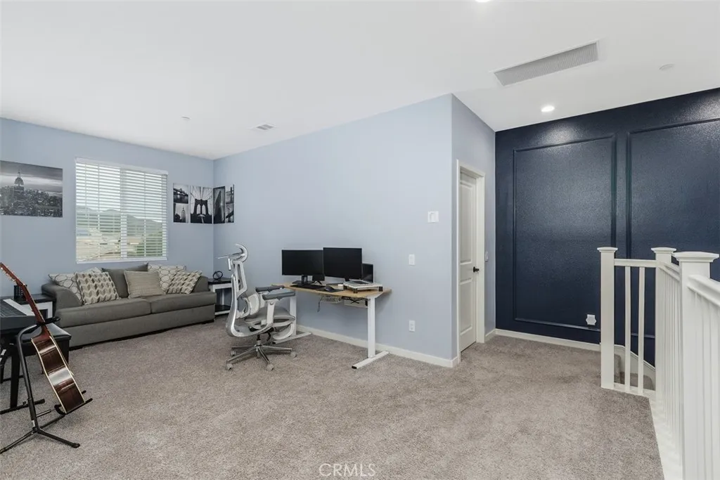 Welcome to this beautiful, turnkey home on a quiet cul-de-sac street. Nothing needed here, unpack and enjoy your entertainer's paradise backyard that features a large concrete patio covered by Alumawood patio cover, tons of space to lounge and BBQ. The kids will love the large turf backyard to play and you will love the low maintenance! RV Parking Ready by simply removing the wall and adding a gate. Concrete is already poured and ready in the front with extra wide driveway and backyard on both sides of the home. Save big on your electric bill with Owned Paid off Solar! Enjoy peace of mind with in home security system, cameras and all equipment included ready to activate. In the evenings in addition to your AC, stay cool and save electricity with your whole house fan. Inside the wonderful open layout makes great use of it's 2,641 sqft which including 3 bedrooms, 2.5 baths, plus down stairs main level office that can be a 4th bedroom by simply adding a closet as well as a upstairs a large loft TV game room that can easily be converted to a 5th bedroom option. Upon entry to the home, you will notice stunning wood LVP floors that flow throughout the downstairs. Your office and half bath immediately to your right and then you will enjoy a spacious open dining room which connects to the kitchen and right into the living room. The kitchen features a large island, granite countertops, stainless appliances which include gas stove/oven, microwave and dishwasher. Upstairs, you're welcomed by a large open loft. This loft was an optional 4th or 5th bedroom and could be easily converted. The Master Suite is large with a luxurious on suite bathroom, tile floors, separate vanities, walk in shower and a large walk-in closet. Across the hall you'll find the large upstairs laundry room which includes washer and dryer and lots of storage space. Then you have very spacious bedrooms 2 and 3 where each have large walk in closets. Bathroom number 2 features tile floors, double sinks, beautiful single slab countertops and tub shower combo. Both the front and backyard are fully landscaped and low maintenance. This stunning home is an absolute gem, in a well-kept newer neighborhood, a must see! Don't miss this one!