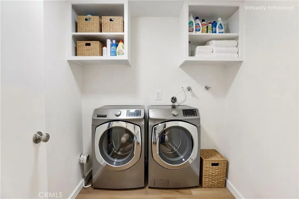 Welcome to Chestnut Square, a gated contemporary enclave moments from the vibrant energy of Downtown Santa Ana. This is not just a condo — this is turnkey living with style. Located on the second floor, this 2-bedroom, 2-bathroom residence offers approximately 1,033 square feet of light-filled, open-concept living. From the moment you walk in, you feel it: clean lines, modern finishes, and a home that’s been thoughtfully upgraded from top to bottom. The kitchen has been completely remodeled with brand-new shaker cabinetry, sleek countertops, and updated flooring — designed to impress whether you're hosting friends or enjoying a quiet night in. Brand-new luxury vinyl flooring flows seamlessly throughout the entire home, complemented by fresh interior paint that creates a bright, contemporary aesthetic. The living and dining areas are expansive and filled with natural light, creating an inviting atmosphere that feels both open and intimate. Both bedrooms offer direct access to a private balcony — delivering that coveted Southern California indoor-outdoor lifestyle. The fully remodeled bathrooms elevate the experience even further, with the primary suite featuring a dual vanity for added comfort and functionality. Major upgrade? A brand-new central A/C and heating system — because comfort matters. Practicality meets luxury with an in-unit laundry room and two dedicated parking spaces — a rare and highly valuable feature in this area. The community itself offers controlled access, subterranean parking, and a recently renovated pool. The HOA conveniently covers water, sewer, and trash — simplifying your monthly expenses. And location? You are minutes from the best of Orange County — including the Santa Ana Zoo, MainPlace Mall, South Coast Plaza, and John Wayne Airport, plus world-class beaches just a short drive away. This is elevated condo living — updated, upgraded, and completely move-in ready. If you're looking for modern comfort in a secure, centrally located community — this is it.