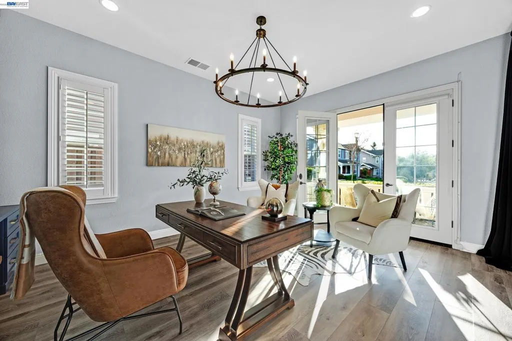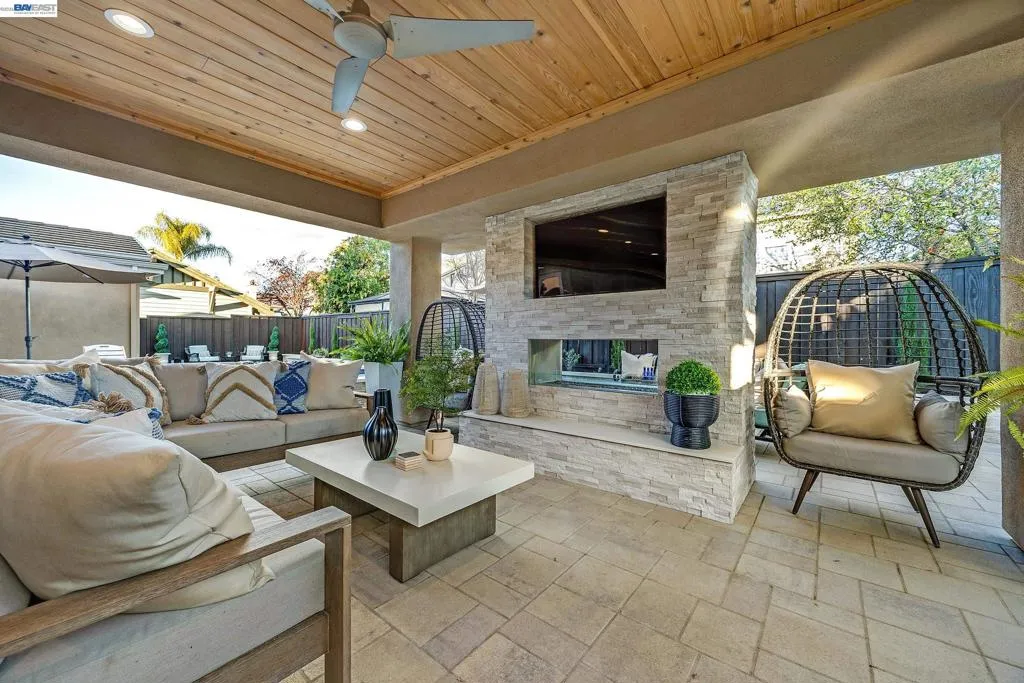 Reimagined with over $600k permanent value upgrades, this lifestyle-forward property delivers exceptional versatility. Main level features a dining room, family room, kitchen w/butler’s pantry, half bath, custom office with estate-style sliding glass doors, and fitness room, convertible to a 5th bedroom. Upstairs offers 2 bedrooms, hall bath, guest ensuite, primary suite, and open loft. The gourmet kitchen showcases Thermador and KitchenAid appliances, gas cooktop, quartz counters, waterfall island, wine refrigerator, and breakfast nook. New floors, updated lighting, custom closets, and window coverings elevate the modernized interior. The 600+ sq ft pavilion with cedar roof offers dining and dual living areas anchored by a dramatic 2-sided fireplace. Built-in outdoor kitchen with Dekton counters, premium appliances, integrated audio, TVs, fans, and recessed lighting enhances year-round entertaining. The pool, raised spa, outdoor bathroom, and putting green inspire relaxation and recreation. Owned solar, pool solar,battery storage, EV charging, heat pump HVAC, and water systems reduce operating costs while robust security promotes peace of mind. A rare opportunity to own a comprehensively upgraded lifestyle property with enduring value. Close to Livermore's distinguished schools.