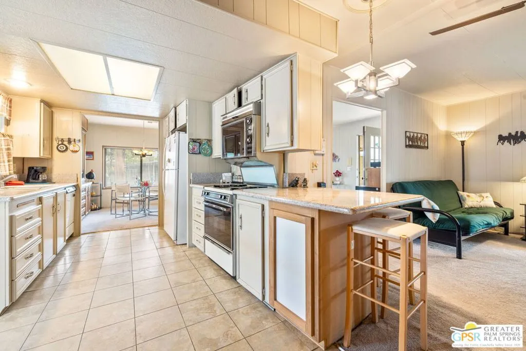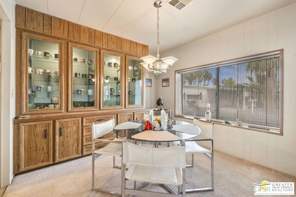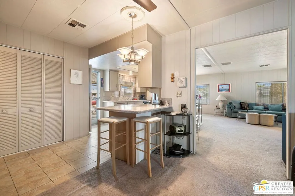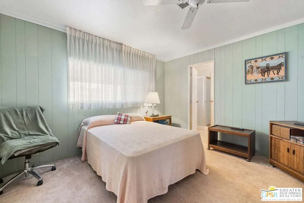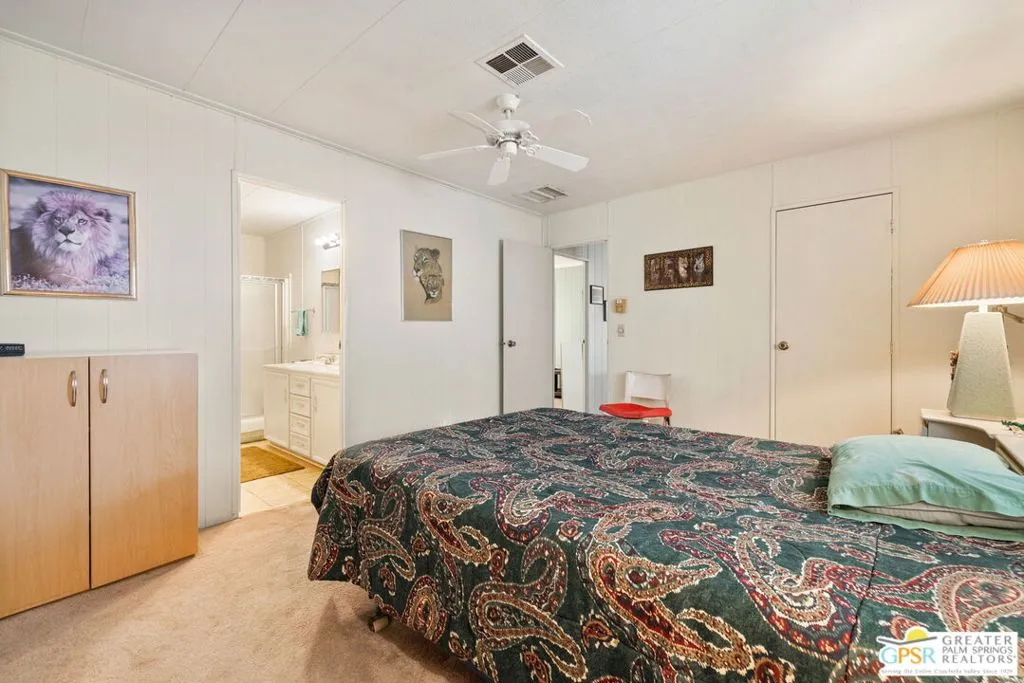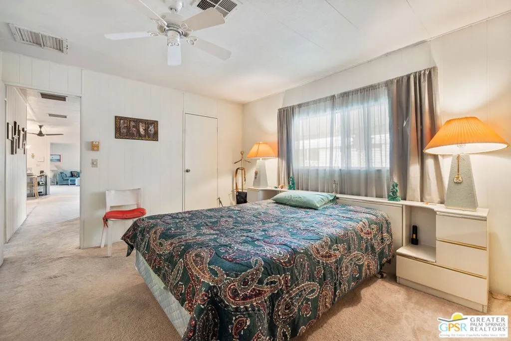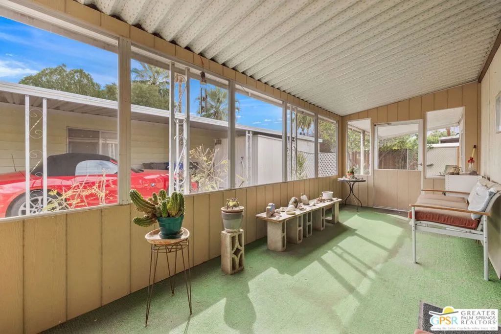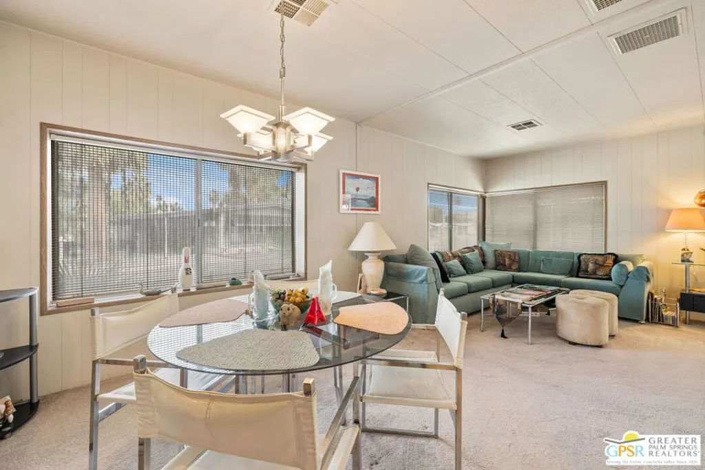 Welcome to your dream Palm Springs lifestyle in this charming manufactured home nestled in the highly desirable Palm Springs View Estates. This spacious 2-bedroom, 2-bathroom manufactured double-wide home in Palm Springs View Estates is seeking its next owner. This home offers the option to keep it as is or transform it into your own. Palm Springs View Estates is a 55+ community that boasts community pools and spas. There's also covered carport parking for at least two cars, and the primary suite features a spacious ensuite bathroom. Welcome to your new home! The 2-bedroom, 2-bathroom home has a spacious interior of 1440 square feet. It's conveniently located near stores, restaurants, two public 18-hole Arnold Palmer-designed golf courses, and minutes away from Agua Caliente Casino. Move-in conditions include furnishings and a spacious storage shed.The open floor plan features am additional versatile Screened Den/California Room, perfect for enjoying the cooler seasons in comfort and style.Affordable living under rent control with space rent at approximately $714 per month, including water, sewer, and trash, makes this a great value for this prime location. (Park requires income of 3x space rent and park approval prior to closing.)The community amenities are abundant, including three sparkling pools and spas, walking trails, and a clubhouse featuring a gym, billiards, ping pong, a community kitchen, and a cozy TV lounge.However, please note that per community rules (CC&Rs), a second resident may be 45+. Owner-occupants only, with no rentals, to preserve the peaceful and neighborly environment. Click on Video Tour for walk through - Additional photos coming soon -