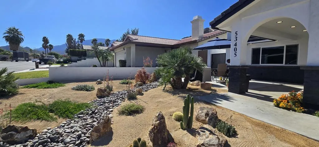 OPEN HOUSE SATURDAY APRIL 18TH FROM 10AM T0 1PM AND SUNDAY - APRIL 19TH FROM 11AM TO 2PM. What a Beauty in La Quinta Cove, one of the most sought-after communities in the Coachella Valley. This home is appearing on the market for the very first time, by the original owner, with a gorgeous remodel and added bonus room off the kitchen that opens up to the rear yard, and sits on an oversized lot. The list of amenities is huge and includes new electric fabric shades in all rooms which block out heat and light, new quartz counter tops in the kitchen and bathrooms, custom made cabinetry, self-closing kitchen drawers and new appliances, and custom closets in the bedrooms. The All New cement tile roof sports solar panels for a system, already purchased, that reduces the power bill to approximately $144/month. The living room has a custom Italian-finished ceiling and a new electric fireplace with an updated heater. Beautiful recessed lighting indoor provides many tasteful options to illuminate the rooms, with dusk-to-dawn sensors on new outdoor lighting. A low maintenance desert landscape welcomes you onto this property and provides even more savings on utility bills. The garage has been resurfaced with new concrete. A new water feature graces the front yard and new pool equipment and barbeque complete the back yard. The contemporary aesthetic of this house shows pride of ownership in every room inside, and in every detail attended to outside. You will welcome the open floor plan living room area with views to the east. Coffee on the front patio catches the sunrise, while views in the rear see the sun set. It's a One-of-a-Kind home, situated near the top of the Cove providing its spectacular views. It is a MUST SEE property and is completely move-in ready this moment.