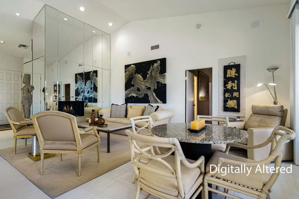 Wake up every day to absolutely stunning lake, mountain, and sweeping multi-fairway views in this light-filled residence located in Mission Hills Country Club. The expansive wraparound porch delivers breathtaking panoramic scenery--perfect for morning coffee, sunset cocktails, or simply soaking in the beauty of the desert landscape.Inside, the home feels open, airy, and move-in ready, featuring a partially updated kitchen, porcelain tile flooring throughout the main living areas, and cozy carpeted bedrooms. A rare, oversized walk-in closet--thoughtfully added by the seller--offers exceptional storage and flexibility. Enjoy true luxury resort-style living with world-class golf, tennis, and pickleball just steps away. Whether you're seeking a full-time residence or a desert retreat, this home captures the essence of Mission Hills living with unforgettable views and an unbeatable lifestyle. You will not be disappointed.
