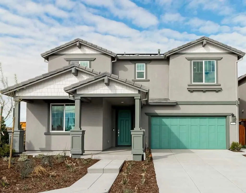 Homesite 43 | Plan 2 at The Knolls in Mountain House offers a spacious 2,688 sq. ft., two-story single-family home with 4 bedrooms and 3 baths on an expansive 6,425 sq. ft. lot. Thoughtfully designed for modern living, this home features an open-concept layout anchored by a gourmet chefs kitchen with quartz countertops, a large island, and a generous walk-in pantry. The layout seamlessly connects to the dining and great room spaces, creating an ideal setting for everyday living and entertaining. The first floor includes a bedroom and full bath, perfect for guests or multigenerational living. Upstairs, enjoy a versatile loft, well-sized secondary bedrooms, an upstairs laundry room, and a spacious Primary Suite with a walk-in closet and beautifully appointed bath. Additional highlights include multi-zone cooling, energy-efficient construction, tile roof, and an attached 2-car garage with EV-ready wiring. The large, welcoming front patio adds charming curb appeal. Nestled within The Knolls, the community offers access to nearby parks, trails, and greenbelts. Conveniently located near Mountain House Parkway, Grant Line Road, and I-205, providing a smooth commute to Tracy, Livermore, and major Bay Area corridors.