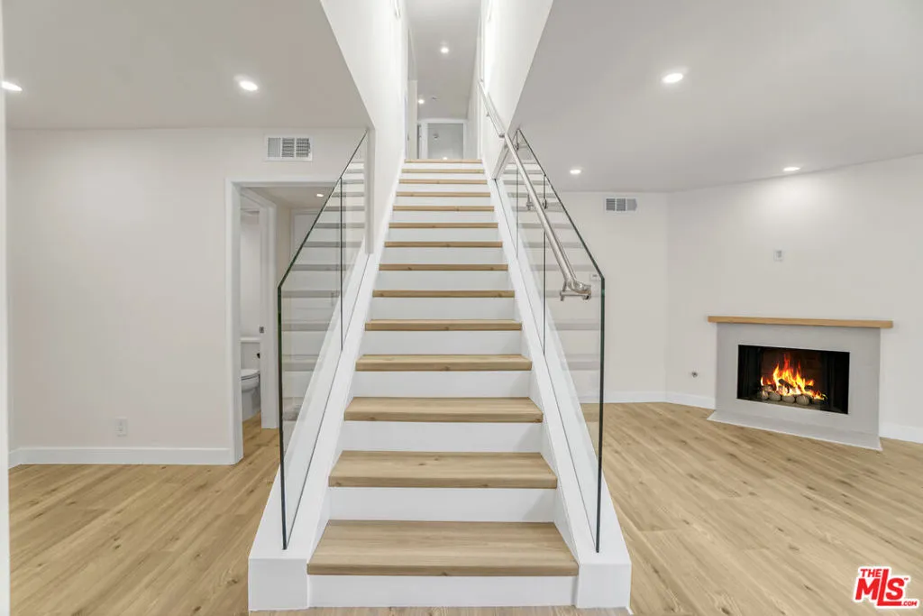 Welcome to the highly desirable Suntree community in Tarzana. This beautifully remodeled 3-bedroom, 2.5-bath corner townhome offers exceptional privacy, abundant natural light, and a thoughtfully designed layout. Situated on the top level, this bright and airy residence features Pergo waterproof flooring throughout, new windows, recessed lighting, and a modern neutral color scheme that creates a warm, inviting feel. The updated kitchen showcases white cabinetry, quartz countertops, and stainless steel appliances blending style and functionality seamlessly. The inviting step-down living room is highlighted by a decorative fireplace and private balcony, while the separate step-down dining area provides the perfect setting for entertaining. A convenient powder room completes the main level. Upstairs, you'll find two spacious guest bedrooms, a tastefully remodeled full bath with a double-sink vanity, and full-size side-by-side washer and dryer hook-ups for added convenience. The primary suite offers a walk-in closet and a large bath, finished with porcelain walls and Marble counters. Additional features include a detached two-car garage located just across the pathway. The Suntree complex is beautifully maintained and centrally located, offering comfort, privacy, and convenience in one of Tarzana's most sought-after communities.