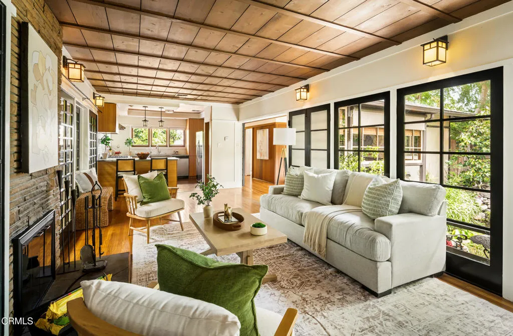A true architectural gem, this one-of-a-kind home was originally designed by Frederick Kennedy Jr. for renowned landscape architect G. Wyman Hope. Thoughtfully updated for today's lifestyle, it now features a remodeled kitchen with sleek cabinetry, stainless steel appliances, modern finishes and new HVAC sytem.Authentic Japanese design elements are showcased throughout, including walls of glass, traditional shoji screens, timber ceilings, hardwood floors, built-in bookshelves, and custom cabinetry. A stunning central courtyard with koi pond and waterfall provides a serene focal point, visible from almost every room.The flexible floor plan includes 3 bedrooms, 2 full bathrooms, and a den--ideal for a home office, studio or possibly a 4th bedroom. French doors, removable windows, and an abundance of natural light enhance the home's airy, peaceful ambiance. Step into a backyard retreat that's perfect for both lively gatherings and tranquil evenings. This beautifully landscaped outdoor space features multiple entertaining areas thoughtfully designed for every occasion. Don't miss this rare opportunity to own a truly unique property that blends timeless design with modern comfort.