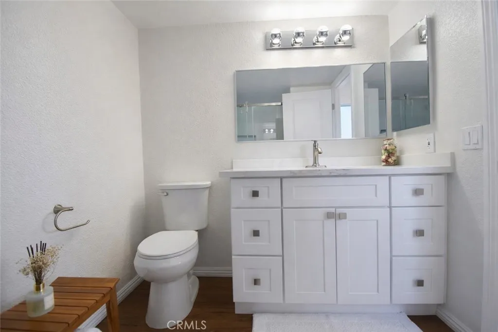 bedrooms with warm wood flooring, including a spacious primary suite offering