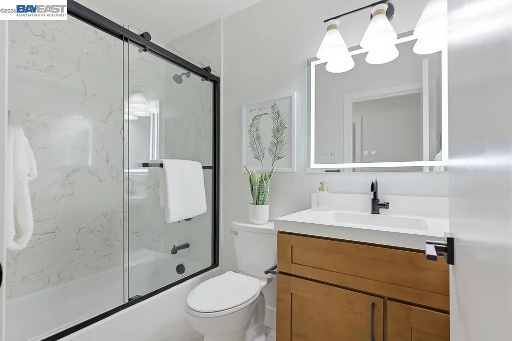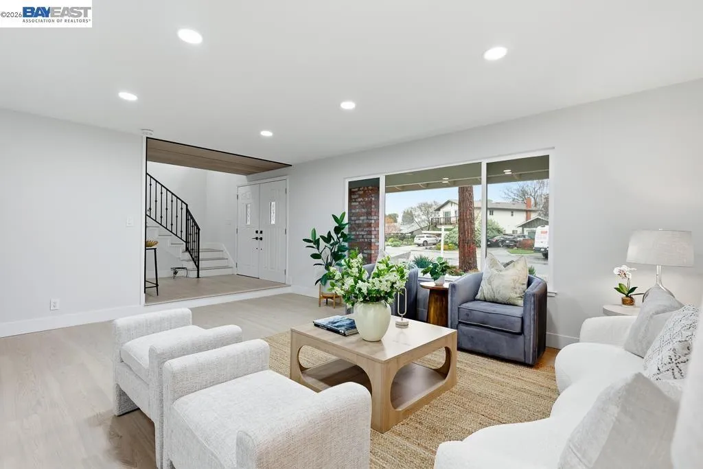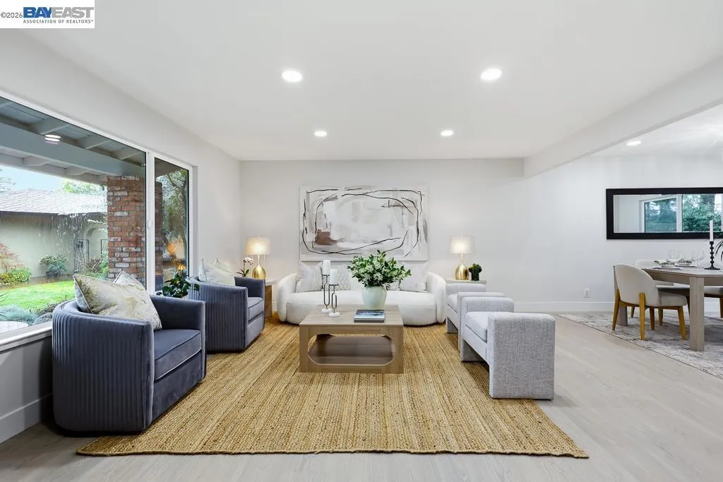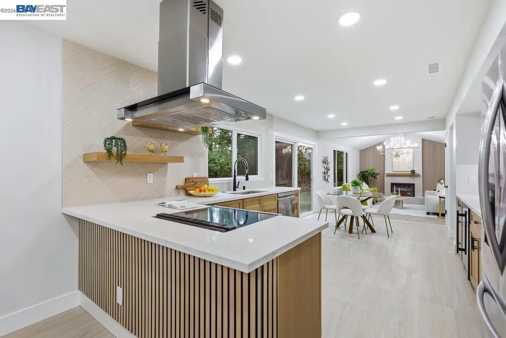 Discover this beautifully renovated, East-facing masterpiece featuring 5 bedrooms, 3.5 baths, and 2,605 sq. ft. of modern luxury. Tucked at the end of a quiet court in the highly-rated San Ramon Valley Unified School District, this home has been thoughtfully transformed with high-end finishes, including luxury vinyl plank flooring, new windows, and designer LED lighting throughout. The brand-new chef’s kitchen shines with quartz countertops, custom tile backsplashes, and premium appliances. The versatile floor plan is a rare find: the main wing hosts four bedrooms, including a primary suite, while a second, private primary suite sits on the opposite wing—complete with its own living area, refrigerator, and cabinetry—offering a turnkey junior ADU opportunity (plans available). Outside, the revitalized grounds feature a modern patio, artificial turf, and fresh exterior paint for lasting curb appeal. Perfectly located near top-tier schools, the new City Center, and easy freeway access, this property perfectly combines modern elegance with multi-generational flexibility.