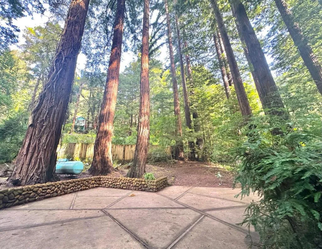 Cozy redwood cabin retreat! Ideal for a weekend getaway by the fireplace or as a full-time residence. Sitting along a scenic commute to the Silicon Valley corridor, this property offers peaceful mountain living with everyday convenience. Gravel drive with parking for three. There is a spacious concrete picnic area tucked beneath towering redwoods. The inviting front porch opens to a charming living space. Modern features: high-speed internet, split heating/AC, tankless water heater, ceiling fan, indoor laundry, and updated fireplace surround. Adorable kitchen with vintage touches and open-to-living room bar seating. Bath updated by previous owners. The second bedroom is on the small side, great for an office or bunk beds; the primary closet includes built-in shelving. Minutes to Big Basin Redwoods State Park, Garrahan Park, The Sawmill Restaurant & Alehouse, and downtown Boulder Creek. This property is turnkey indoor-outdoor living in a nostalgic setting.