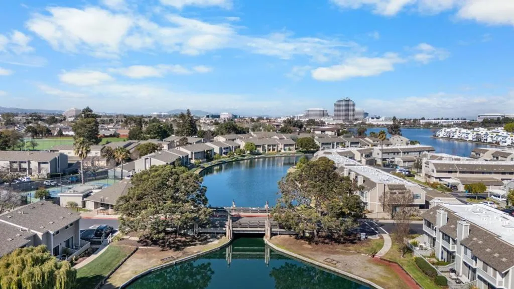Peaceful and beautifully designed 3 bed, 2.5 bath waterfront townhome offering privacy, and a true sense of calm. Laminate flooring flows throughout the main level, creating a warm, cohesive feel. A half bath just off the entry is ideal for guests. The bright, open kitchen with updated appliances connects easily to the living and dining area. The living room is anchored by a fireplace and opens directly to the rear deck, where the water views are expansive, private, and calming. This outdoor space feels like a quiet retreat, perfect for unwinding and enjoying the tranquil surroundings. Upstairs, the same flooring continues. The primary suite offers a modern feel with frosted glass closet doors, interior organizers, and an en-suite bath with a walk-in shower. Stare off into peaceful water views that enhance the sense of escape. Two additional bedrooms, a full hall bathroom, and a conveniently located upstairs hallway laundry complete the upper level. This home offers easy access to scenic walking and biking paths, parks, and waterways, with nearby shopping, dining, and top local amenities just minutes away. A detached 1 car garage & clubhouse wit pool adds lifestyle conveniences while preserving the calm, waterfront lifestyle Foster City is known for.