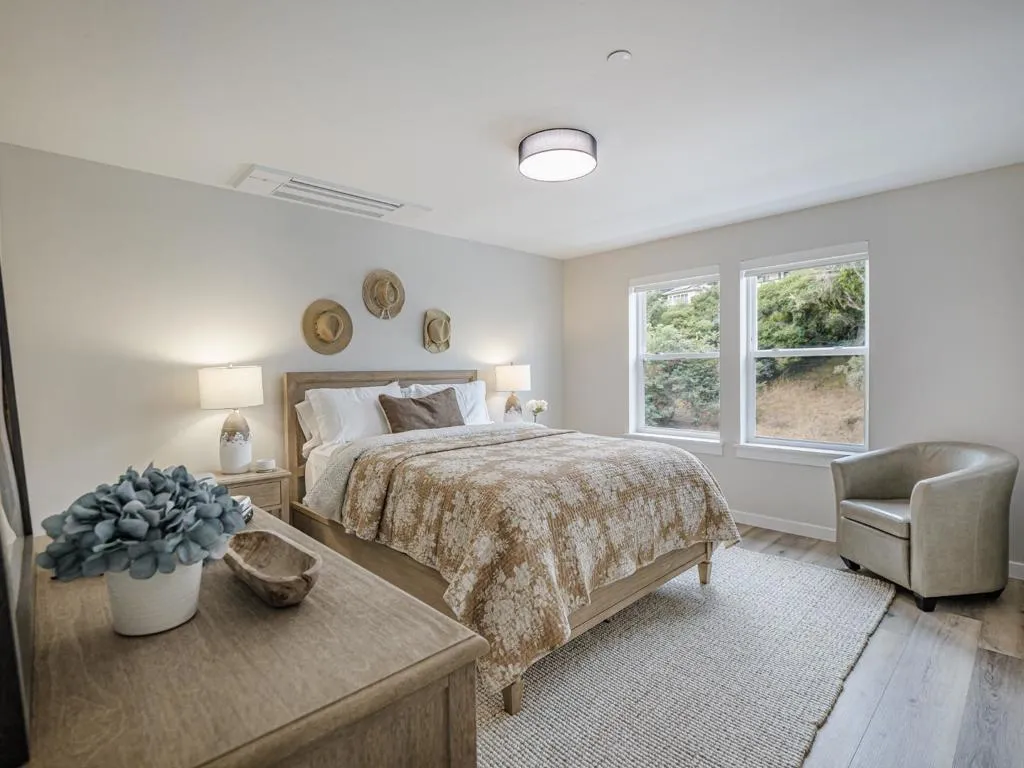 Newly completed townhouse-style condos in Aptos Village, a thoughtfully planned 11.5-acre community nestled between the trees and the ocean. This pedestrian-friendly town square blends timeless architecture and small-town charm with modern luxury and energy-efficient design. A rare opportunity for brand-new construction, this 3-bedroom residence offers a unique chance to secure a new home at a compelling price point in one of Santa Cruz County's most desirable communities. The open-concept main level features a spacious kitchen, dining area, and living room that opens to a private balcony overlooking Aptos Village-ideal for morning coffee or evening relaxation. A full bedroom and guest bathroom on this level provide flexibility for guests or home office use. Upstairs, two primary suites offer walk-in closets and comfortable separation. A generous 2-car garage with direct interior access adds convenience and security. Walk to coffee, dining, and shopping, with easy access to beaches, redwood trails, and everyday essentials.***Photos are of Staged Unit, Same Floorplan. ***