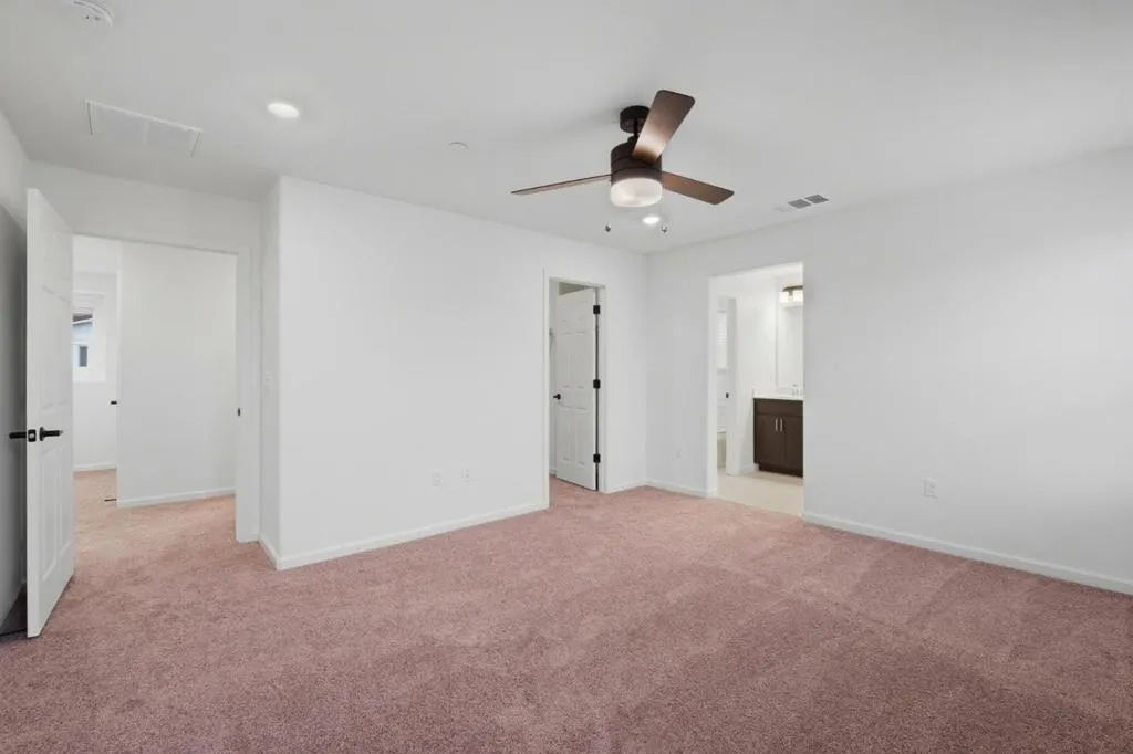 Newly constructed 2025 KB Home, two-story single-family in the Bayberry at Laurel Ranch community offers 1,675 sq ft of living space situated on a large 4,330 sq. ft. corner lot. First floor features an upgraded kitchen with quartz countertops and backsplash, and an island with breakfast bar. Kitchen is equipped with ENERGY STAR® certified Whirlpool® stainless steel Refrigerator, oven and dishwasher. The bright, open concept floor plan on the first floor features 9-foot ceilings, LED recessed lighting, beautiful shutters enhancing the interior livable area. Dining/living room off the kitchen and sliding door to the back yard. Upstairs offers 3 bedrooms/2 baths including a spacious primary suite, primary bath and a large walk-in closet. Dedicated laundry room with a clothes washer and added cabinets. Home is equipped with solar panels, energy-efficient Low-E glass windows and patio door, electric water heater, 2-car attached garage designed for modern living. Prime location for commuters, ideally positioned near both Highway 4 and 1-680. Residents enjoy quick access to several local shopping and dining areas, including The Streets of Brentwood, just minutes away.