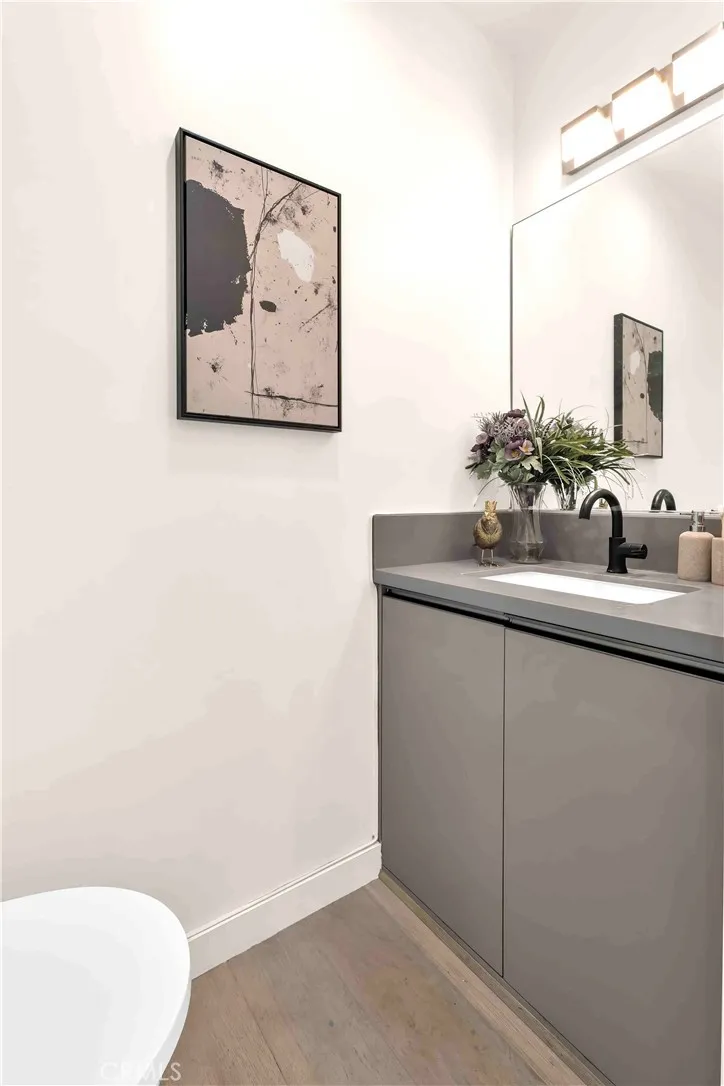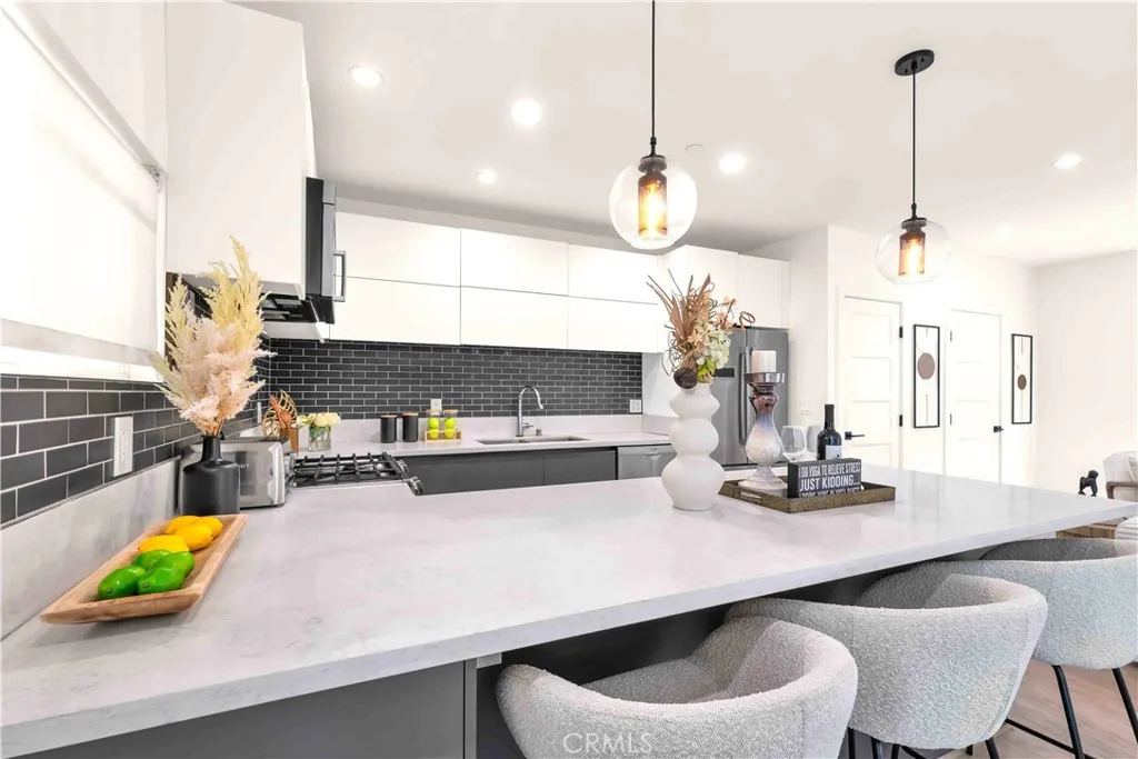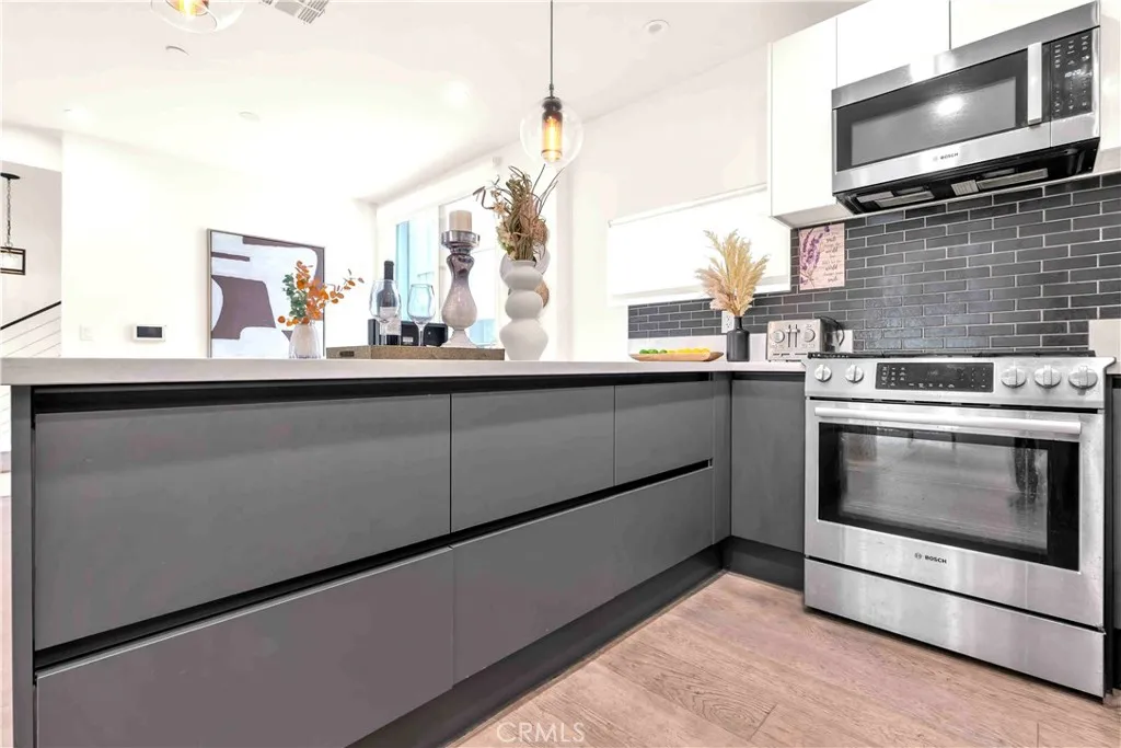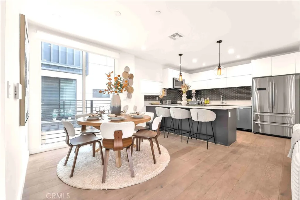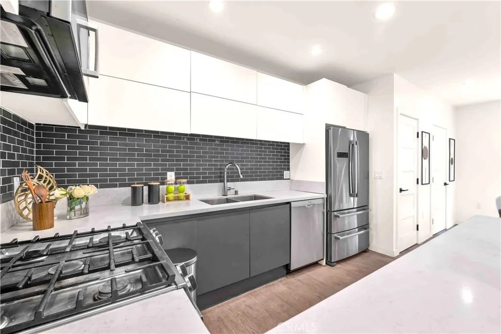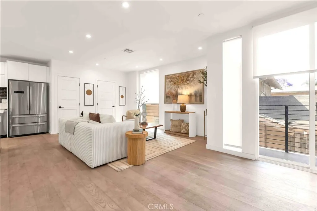 Some photos are from a previous staging and are for illustrative purposes only. 113 1/2 N Manhattan Pl. Contemporary Jewel in an 8-Home Gated Enclave. Built in 2017 with steel-beam construction for superior seismic strength, this four-level residence blends modern design with rare privacy and value. • Exclusive Community: one of only eight detached homes behind controlled access—quiet, secure, and neighborly. • Smart Layout: ~1,900 sq ft, 3 bed/3.5 bath + flex den, open-concept main level, wide-plank wood floors, walls of windows, recessed lighting. • Chef’s Kitchen: Bosch stainless appliances, quartz island, custom cabinetry. • Indoor-Outdoor Living: private rooftop terrace framing Downtown LA & Hollywood Sign vistas—ideal for sunset dinners and summer BBQs. • Everyday Ease: side-by-side two-car garage with direct entry, in-unit laundry, ensuite baths for all bedrooms. • Ultra-Low HOA: only $50/month, a fraction of comparable urban communities. • Prime Walk Score: steps to Hancock Park, Larchmont Village cafés, Koreatown eateries; minutes to DTLA, Hollywood, the Grove, and the Purple Line. Modern style, eco-forward build, coveted location—this is the turnkey LA lifestyle you’ve been waiting for.