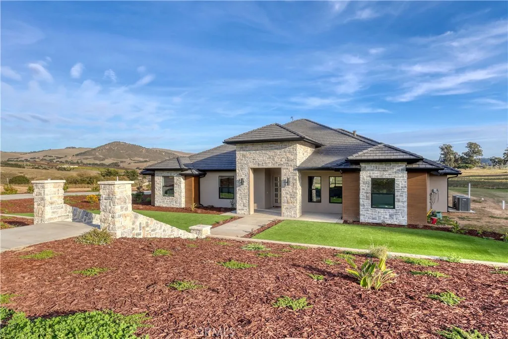 Nestled within a prime gated community, this exquisite 5-bedroom, 5-bathroom home offers the perfect blend of luxury and comfort on a sprawling 2.14-acre lot. Brand new construction boasting over 3,300 square feet of thoughtfully designed living space, this home features an open floor plan ideal for modern living and entertaining. The heart of the home is the stunning great room, complete with a cozy fireplace, seamlessly flowing into a 225 sq. ft. covered patio, perfect for indoor/outdoor gatherings. Adjacent to the great room is a formal dining room and a chef’s dream kitchen, outfitted with brand-new KitchenAid appliances, soft closing cabinetry, a spacious center island with bar seating, and a walk-in pantry. The west wing hosts the luxurious primary suite, which opens to the back patio through elegant French doors. The en-suite primary bathroom exudes spa-like tranquility with a walk-in shower, a free-standing soaking tub, and dual vanities. This wing also includes a second bedroom with convenient access to a half bath. The east wing offers a versatile layout with three additional bedrooms. Bedroom 3 features access to a full bath, while bedrooms 4 and 5 share a third full bathroom. A large laundry room with abundant shelving and cabinetry is located just inside the access from the impressive 1,041 sq. ft. four-car garage, which includes its own half bath for added convenience. Every detail of this home reflects quality, from the engineered hardwood floors throughout to the energy-efficient tankless water heater, owned solar panels, and a robust 1,500-gallon septic tank. Enjoy breathtaking sunsets from the expansive back patio, surrounded by the serenity of custom-built homes on generous lots. This home truly offers the best of both worlds: modern elegance and ample space to embrace your dream lifestyle.