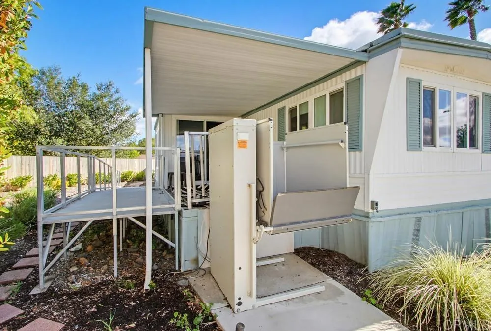 Three months free space rent if you put your offer in before the end of March! Beautiful home located in a scenic and highly desirable 55+ community. This 1-bedroom, 1-bath home sits on a LARGE lot with generous outdoor space—perfect for gardening or pets. If you’ve been looking for peaceful surroundings with room to breathe, this is it. Inside, you’ll immediately notice the bright and open feel created by the lofted ceilings, new windows, and updated flooring throughout. The home has been thoughtfully maintained and updated with functionality in mind. Upgrades include a new air conditioner, new heater, recently resealed roof, and new garbage disposal. The home is ADA accessible and includes both a lift and a ramp leading up to the front door. Oversized living room with lofted ceiling makes the home feel larger than a typical single-wide. Affordable, functional, and truly move-in ready—this Fallbrook gem offers comfort, accessibility, and outdoor space in one of the area’s most sought-after 55+ communities.