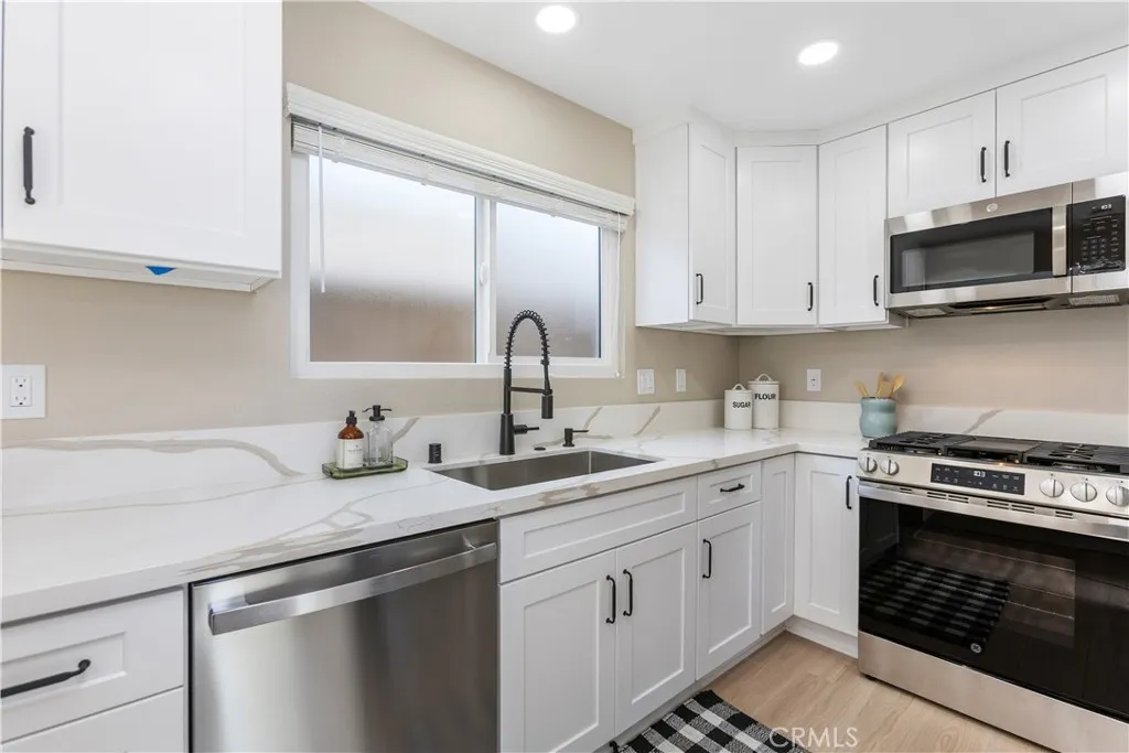 Gated- Brand New Construction Inside - Detached Single Family Home! 3 bed 2.5 bath, Plus versatile downstairs Den/Office/Media room, 2 car attached garage with direct house access. Downstairs laundry with washer and electric dryer hookups. The primary suite has double sinks, walk in shower with seat, quarts counters and double sinks. Luxury vinyl and tile thru out, all new shaker style cabinets with hardware, quartz countertops and stainless steel high end appliances. Central heating and air and all new windows. Unit is located in one of Brea’s most desirable school districts. You are just a short walk to Downtown Brea, the Brea Mall, shopping, dining, entertainment and conveniently located near the 57 Freeway. This home offers easy access to everything you need while maintaining a peaceful residential feel.
