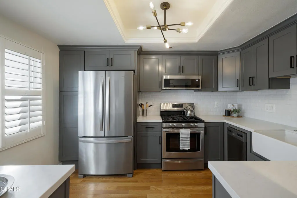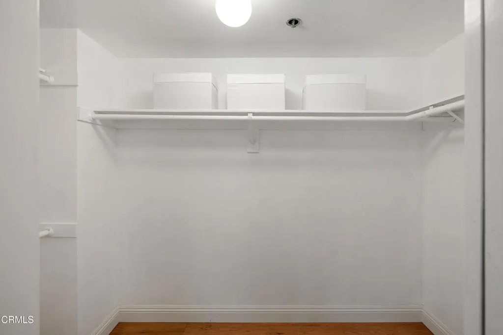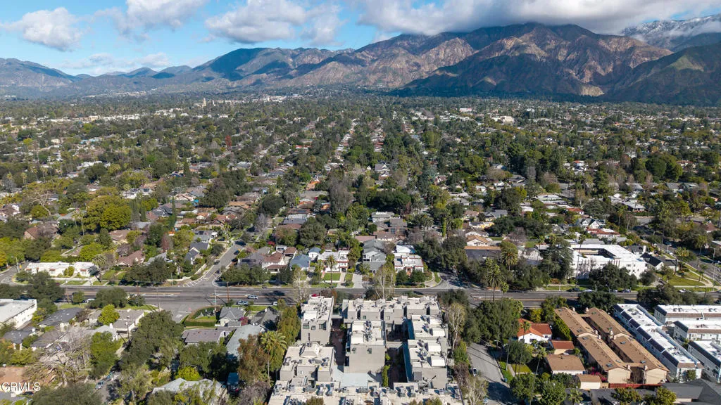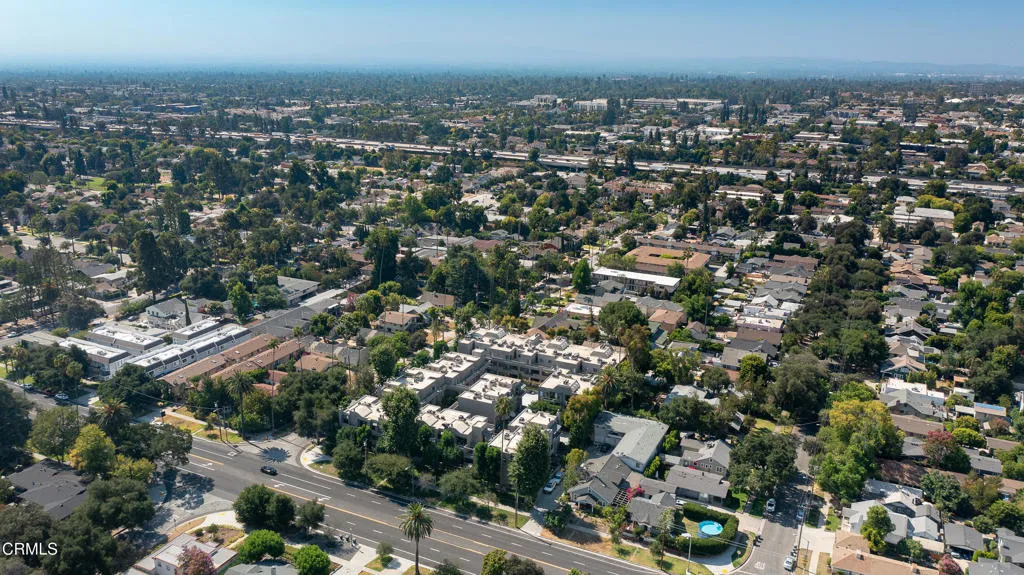 Welcome to The Groves of Pasadena, a gated & secure community offering comfort, privacy, & refined style in a beautifully remodeled two-story townhouse-style residence. Hardwood floors greet you at the entry & flow seamlessly throughout the home, creating warmth & continuity. To the left, the fully updated kitchen blends classic charm with modern functionality, quartz countertops, a farmhouse apron-front sink, designer subway tile backsplash & a five-burner gas range with a sleek low-profile microwave above. A tray ceiling with a custom light fixture adds architectural interest, while wood-louvered shutters frame dual-pane windows overlooking the courtyard. A French door refrigerator with a bottom freezer completes this thoughtfully curated space. To the right of the entry, a stylish guest powder room with a pedestal sink sits alongside a dedicated laundry room featuring a side-by-side washer & dryer. Just beyond, the dining area opens to the inviting living room, where recessed lighting, dual-pane windows & a gas corner fireplace create an ideal gathering space. A sliding glass door leads to a generously sized private patio, perfect for outdoor dining, lounging & entertaining, complete with its own storage closet. Upstairs, hardwood flooring continues across the landing, where linen cabinetry provides added storage between the two ensuite bedrooms. The first suite features dual-pane windows, wood-louvered shutters, a custom ceiling fan with solid wood blades & a spacious walk-in closet. The attached bathroom offers custom tile flooring, a stone-topped vanity with soft-close drawers, a private water closet & a deep soaking tub & shower combination surrounded by designer subway tile extending to the ceiling. The second bedroom mirrors the same level of thoughtful design with matching hardwood floors, a coordinating custom ceiling fan, dual-pane windows & custom shades that balance privacy with natural light. Its ensuite bathroom includes a stone-topped vanity, private toilet room & an oversized shower with custom chevron tile detailing & sliding glass doors. Residents enjoy elevator access to assigned subterranean parking, a communal barbecue area & close proximity to the Shops at Lake Avenue, popular dining destinations & convenient Metro access offering flexible commuting options & easy access to all that Pasadena has to offer. A turnkey opportunity combining security, style & an exceptional location in one of Pasadena's desirable communities.