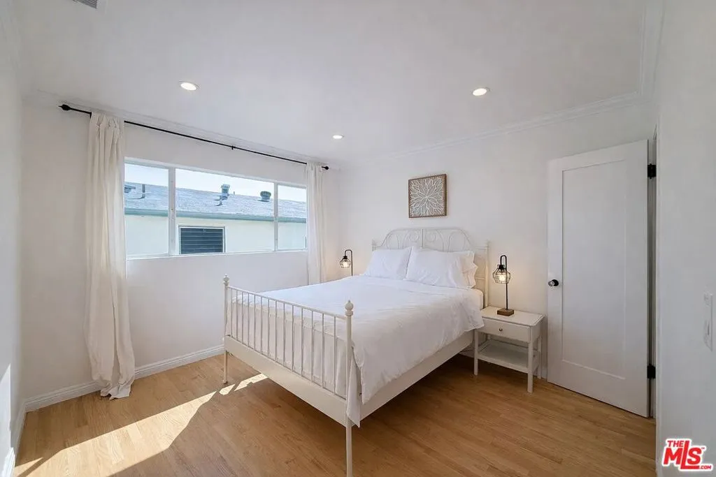 Gorgeous & bright upstairs 2 Bed/1 Bath at 20th & California Newly renovated kitchen with Calacatta marble countertops & glass front cabinetry Excellent cabinet storage All stainless steel appliances with gas range, dishwasher, and double sink Breakfast bar seating Upstairs corner apartment with no one above Central air and heat Pool Tumbled marble bathroom with shower tub combo French doors in living room open to private balcony West facing with lots of natural light and amazing closet space Washer/Dryer in unit One parking space included in covered lot Recessed lighting in every room Hardwood floors throughout Gated property Just four blocks to both Whole Foods and Trader Joe's Close distance to all the shops, cafes, and restaurants in Santa Monica. Water/sewer/trash included. Tenant responsible for gas & electricity. First month's rent + security deposit due on signing. 1 yr lease. Pet friendly. No smoking.